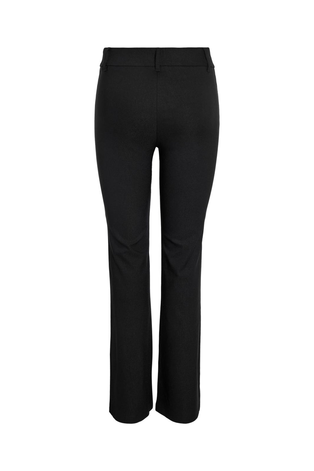 Sorte flared bukser fra Noisy May med slim fit foroven og udsvingede ben. Bukserne har almindelig taljehøjde og går ned til gulvet.
