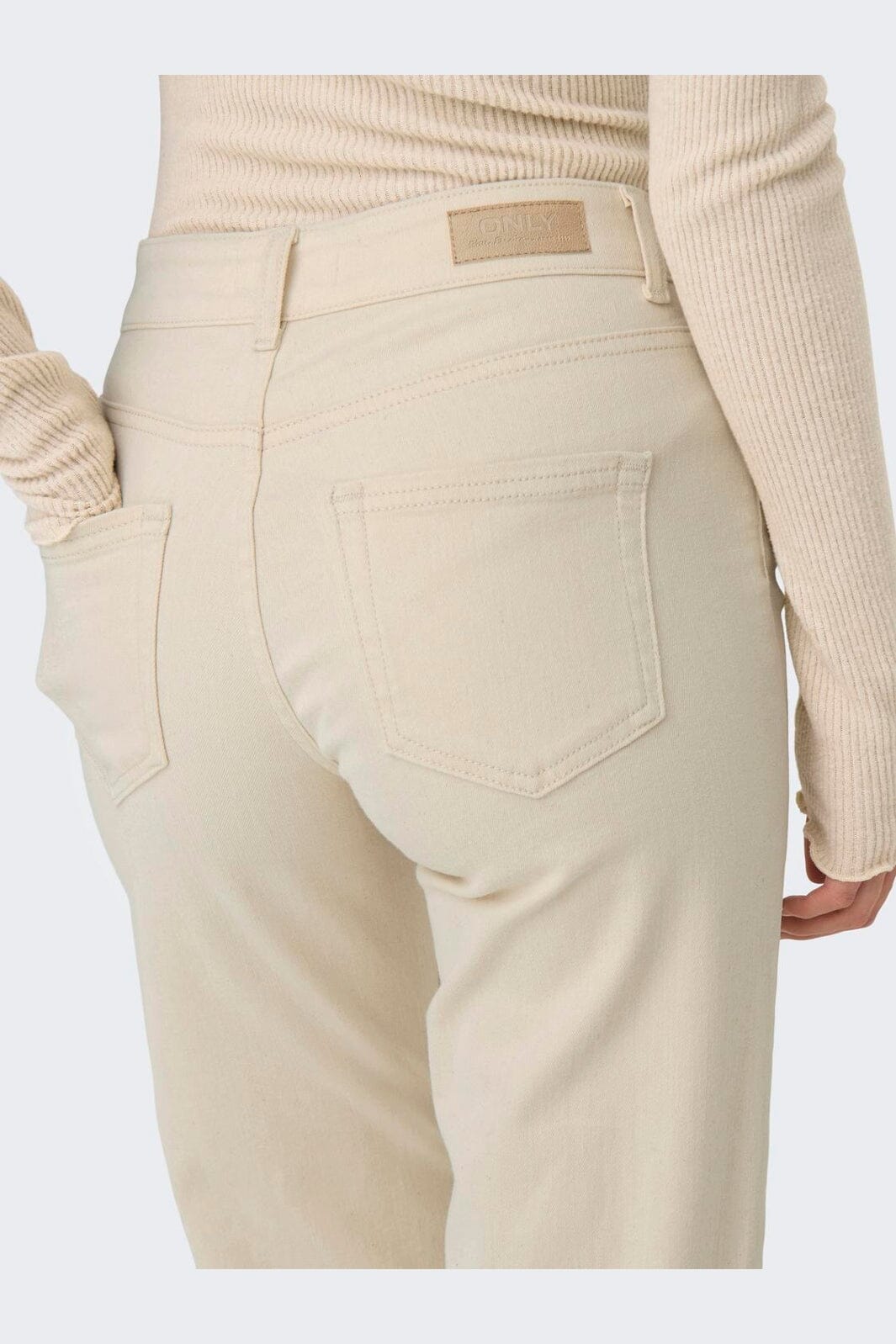 Lige bukser fra Only i en off-white farve. Bukserne har en lige pasform med mellemhøj talje og ankellængde.