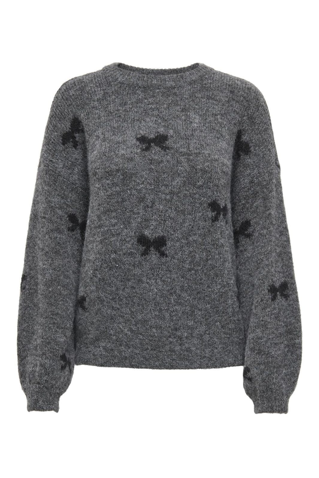 Only Onlbrunhilda Life Ls Bow O-Neck Knt Farve: 4947221 Medium Grey Melange Black/Mini Bow