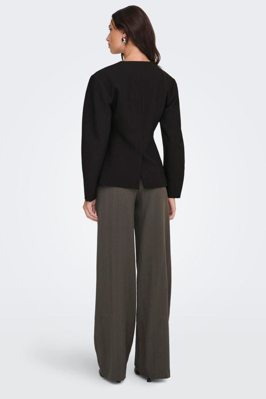 Sort blazer fra Only med V-halsudskæring og volumenermer. Blazeren har en enkelt knap foran og to praktiske lommer. Den regulære pasform giver god bevægelsesfrihed.