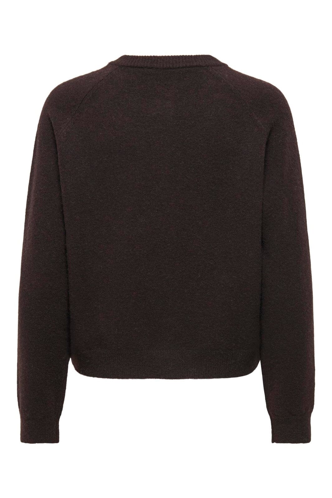 Mørkebrun cardigan fra Only med guldsløjfeknapper langs forsiden. Cardiganen har lange ærmer, rund halsudskæring og en regular fit-pasform.