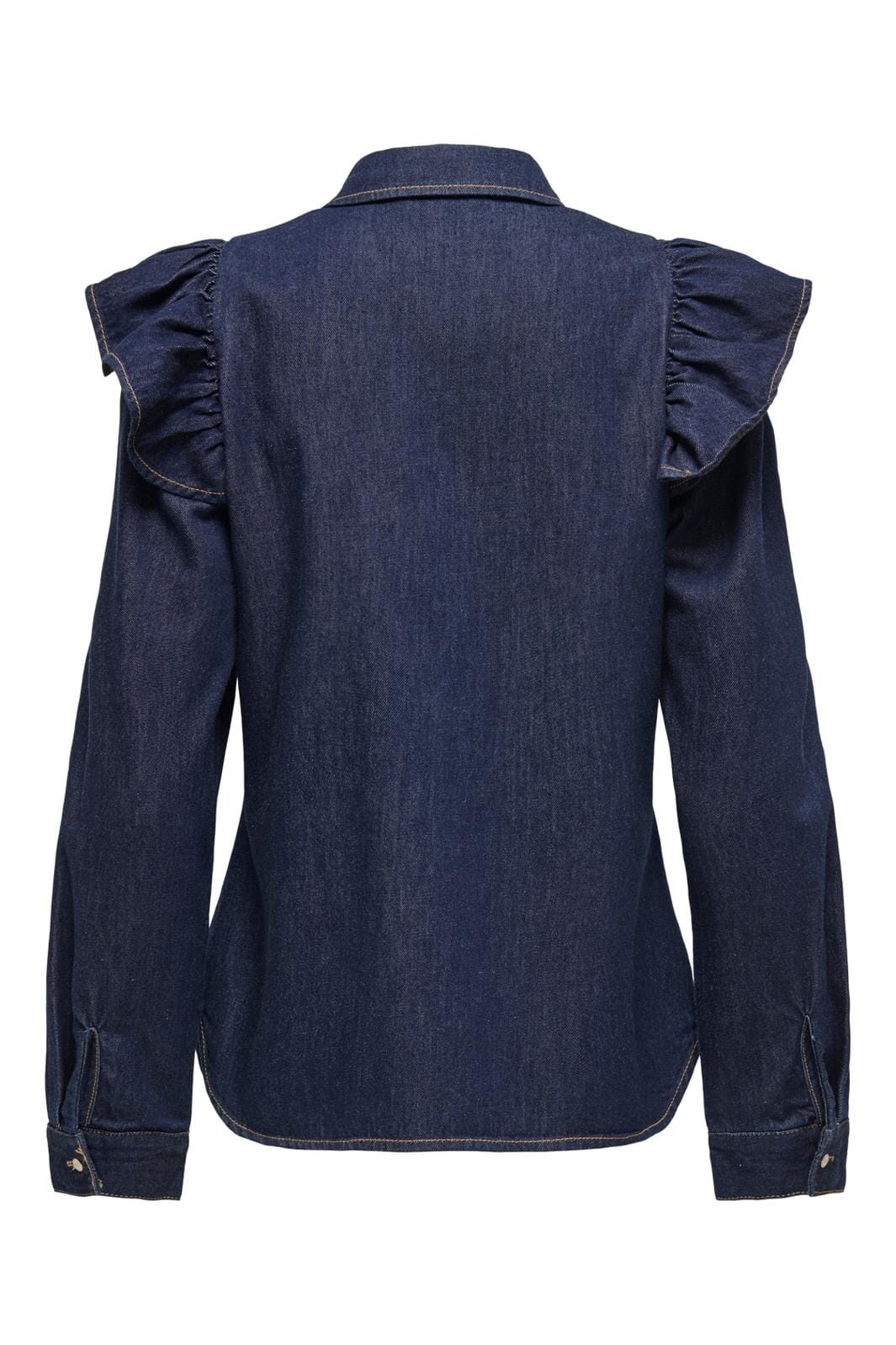 Only Onlindigo Ls Frill Shirt Qyt Farve: 4692745 Dark Blue Denim Rinse