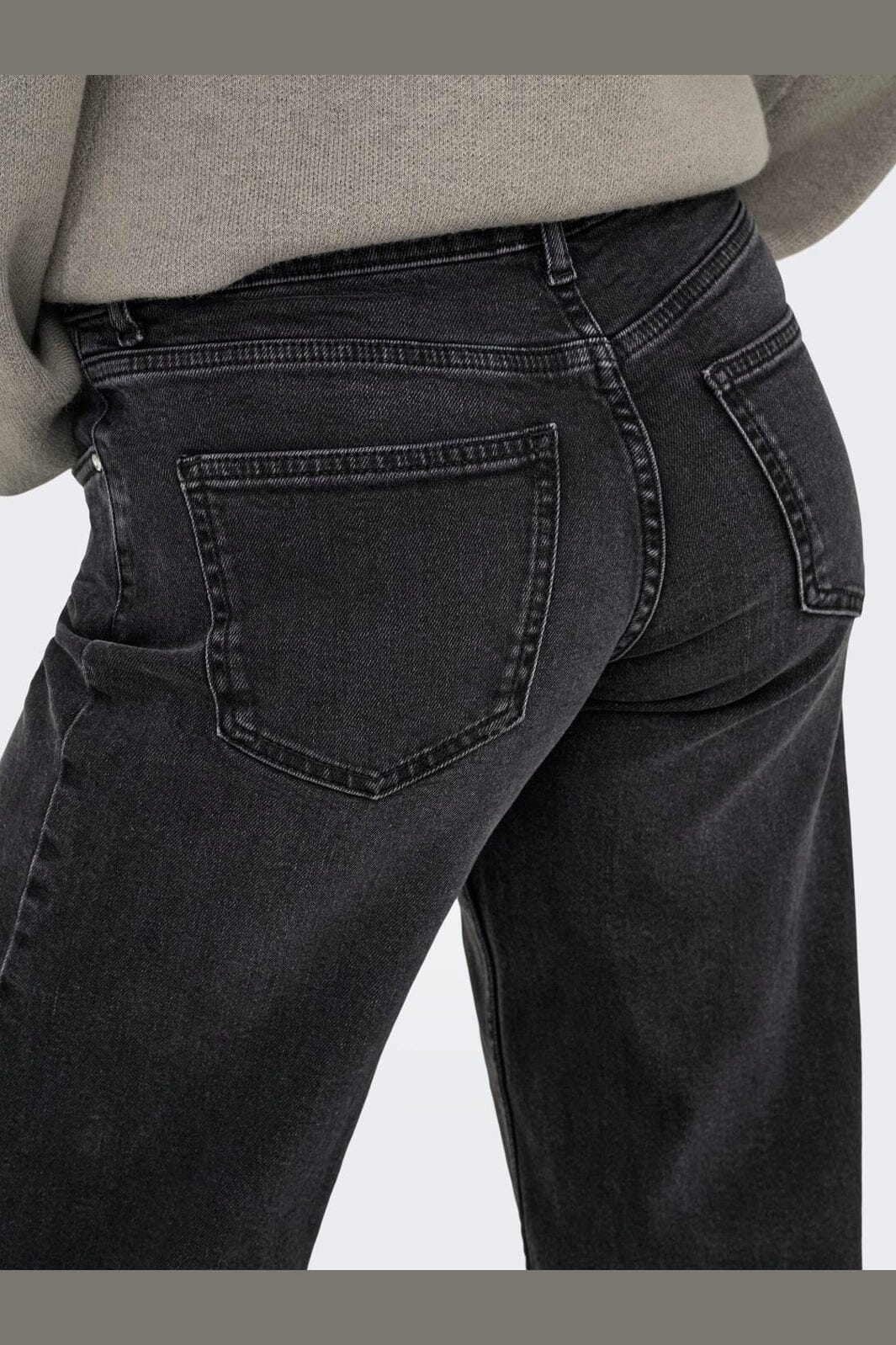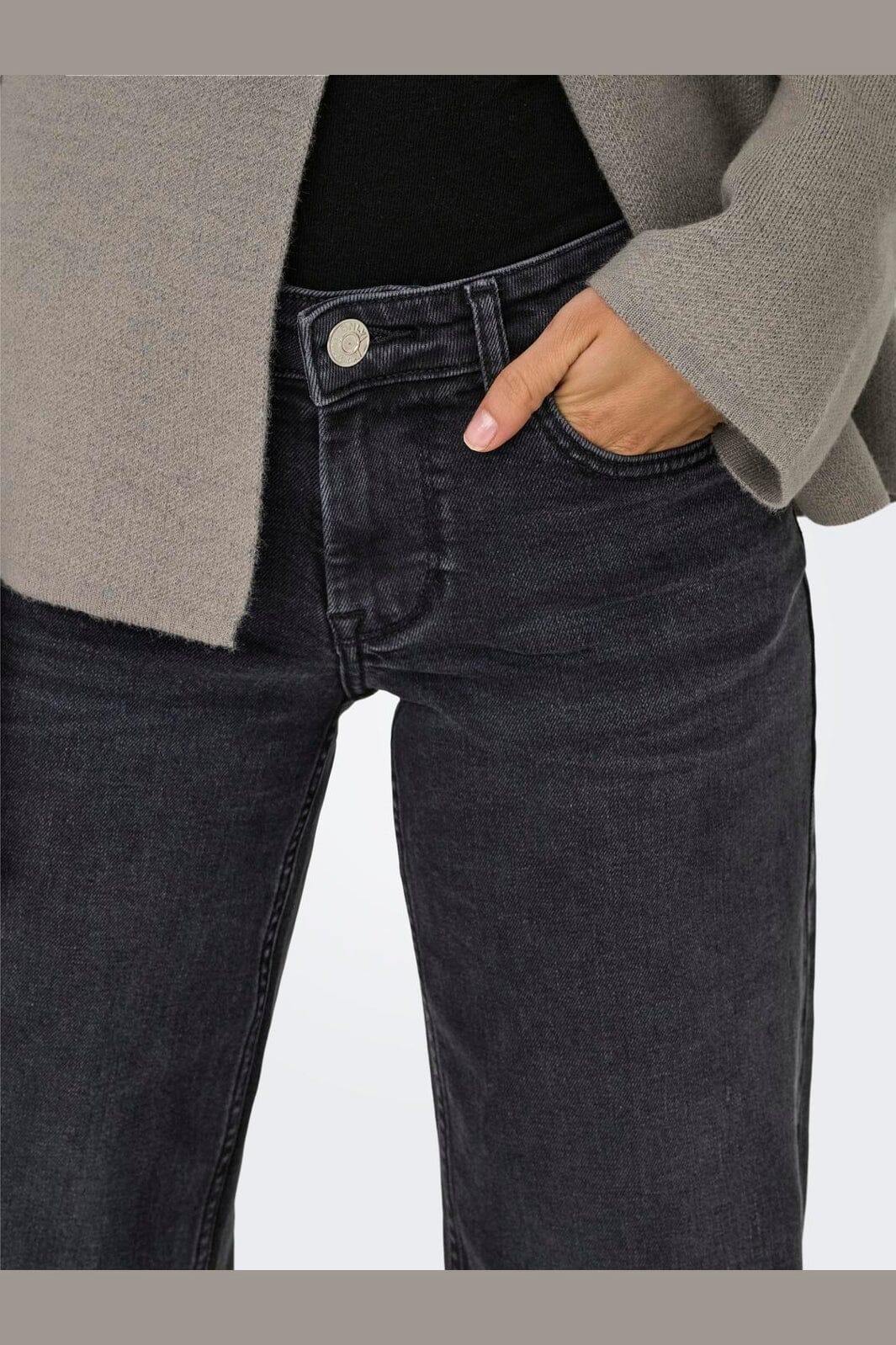 Wide leg jeans fra Only i vasket sort. Jeansene har en løs pasform og brede ben, der går til anklen.