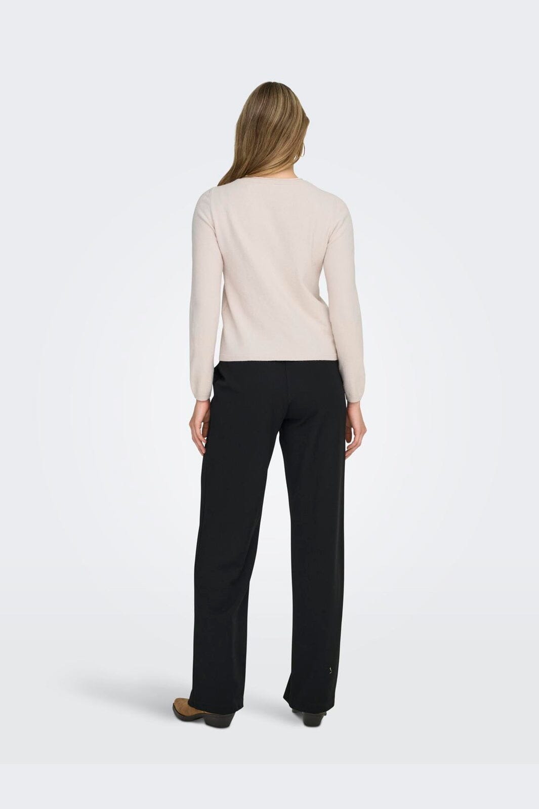 En lys cardigan fra Only i en beige meleret nuance. Cardiganen har lange ærmer, rund hals og knaplukning foran.