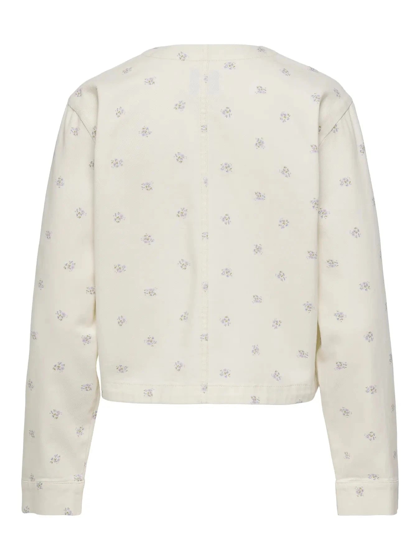 En jakke fra Only i 100 % bomuld med blomsterprint på en lys off-white baggrund. Jakken har spredt krave og lukkes med synlige knapper.