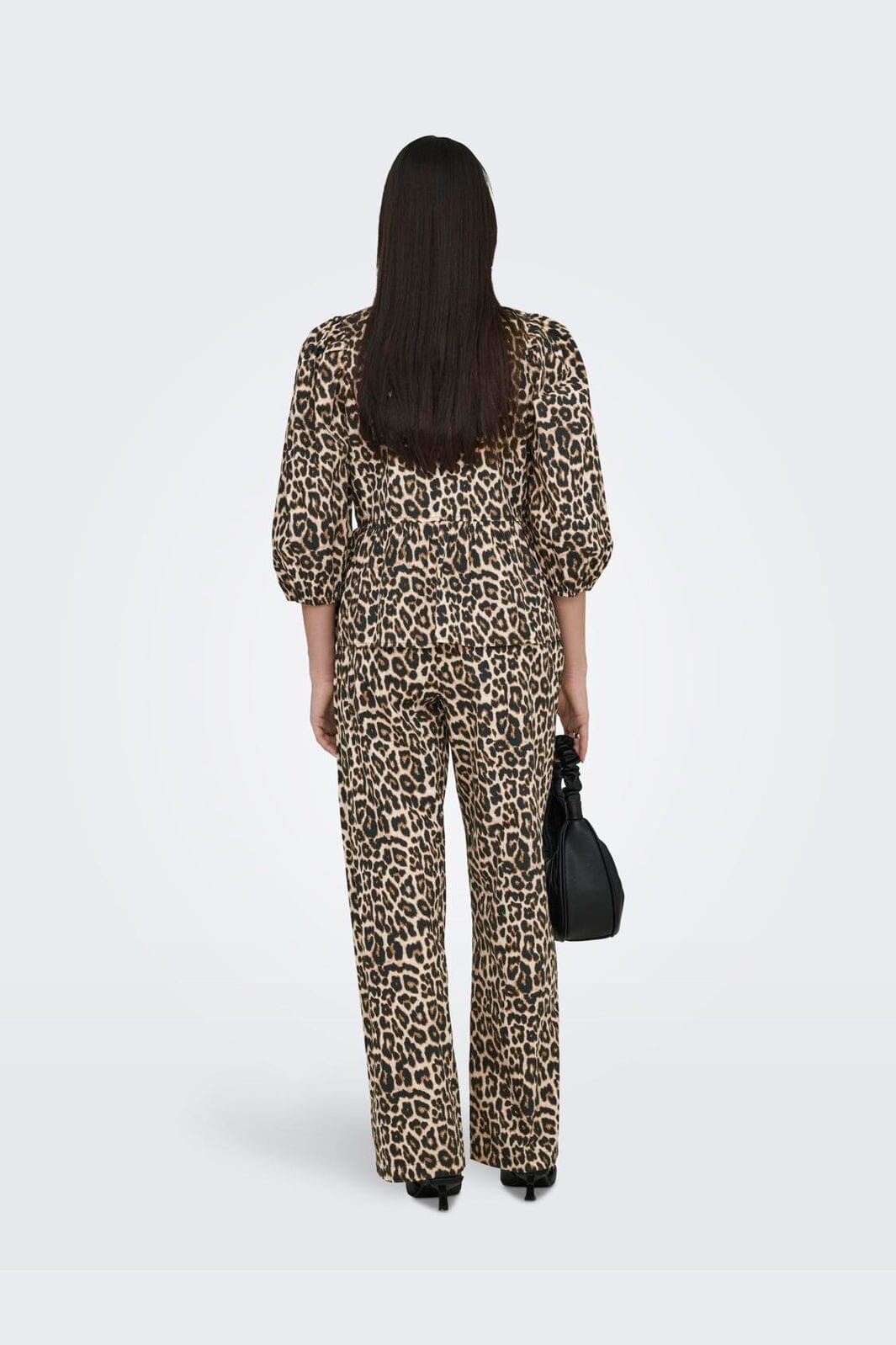 En top fra Only med leopardprint i beige nuancer. Toppen har en sløjfedetalje foran, 3/4 ærmer og en O-hals. Regular fit-pasformen giver en afslappet silhuet.