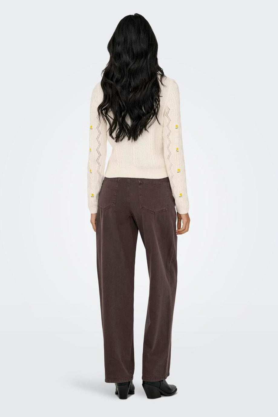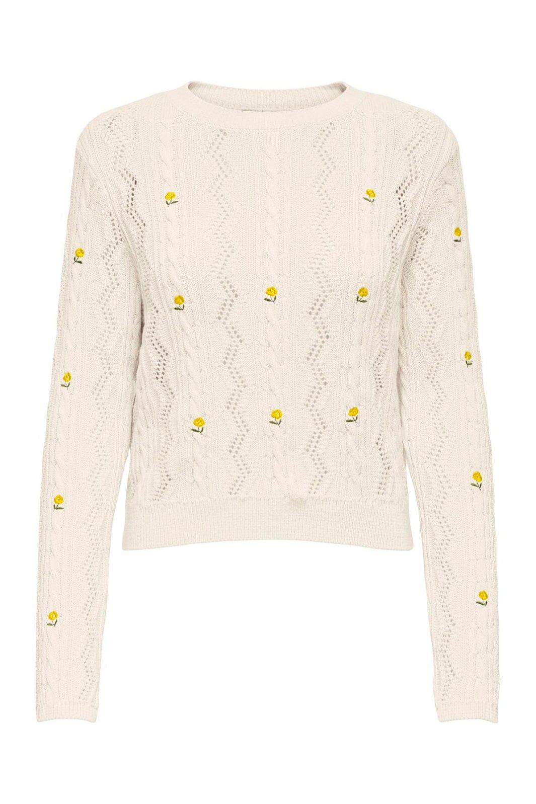 Only Onlrita Life Ls Embr Cable Knt Farve: 4862605 Ecru Yellow Flower