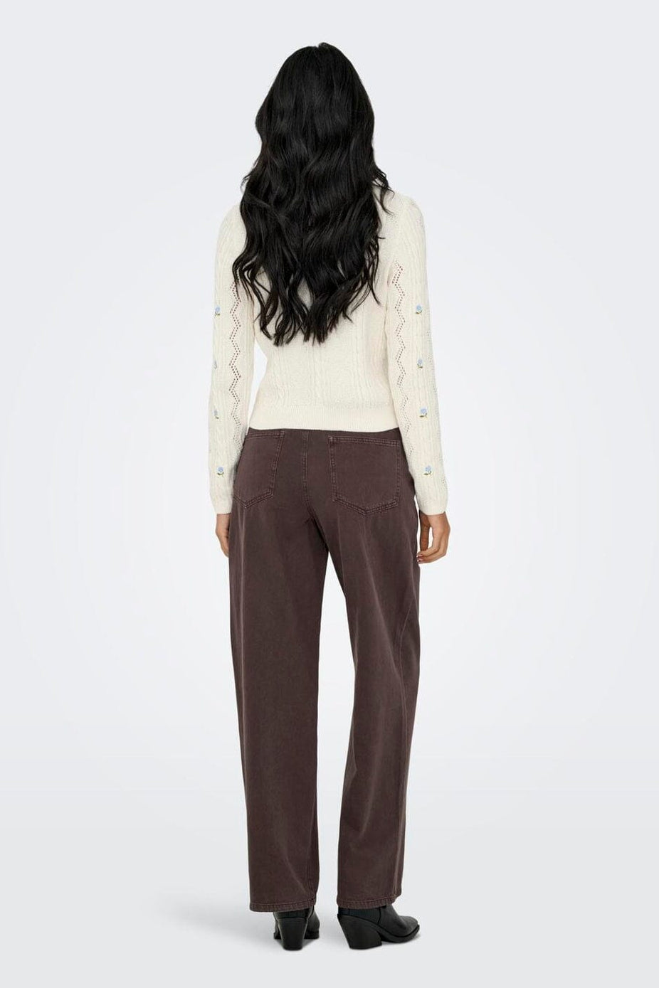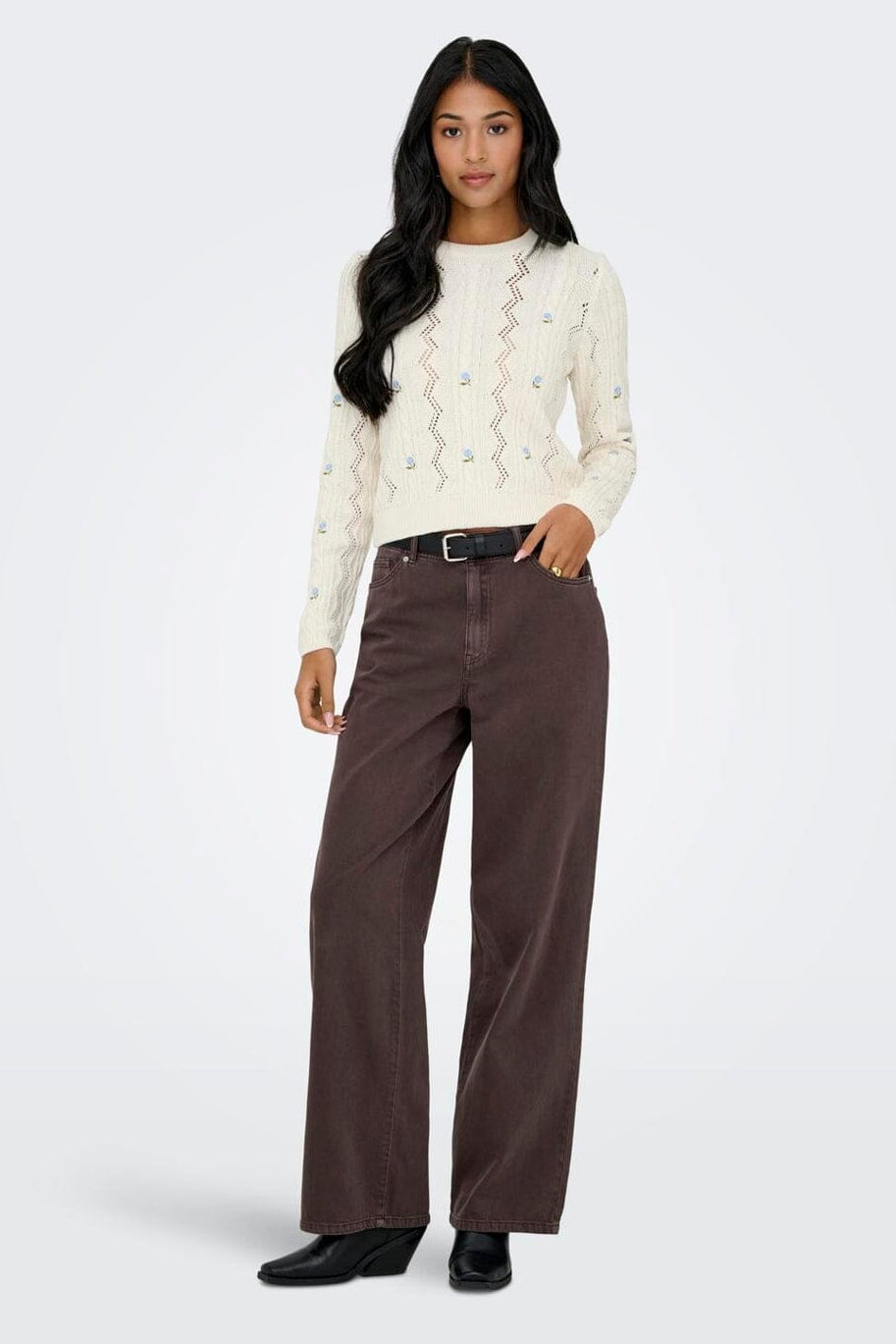 Only Onlrita Life Ls Embr Cable Knt Farve: 4862606 Ecru Cashmere Blue Flower