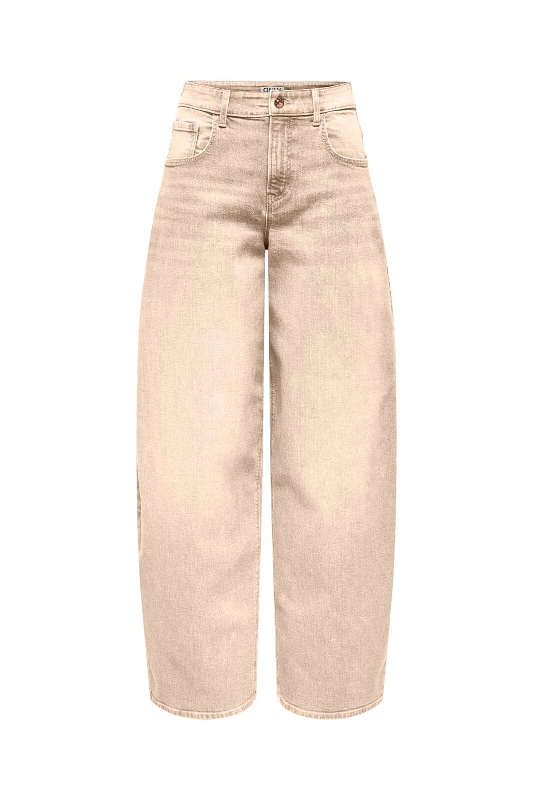 Lyse beige jeans fra Only med høj talje og løs pasform. Fremstillet i bomuld med elastan for bevægelsesfrihed og komfort i dagligdagen.