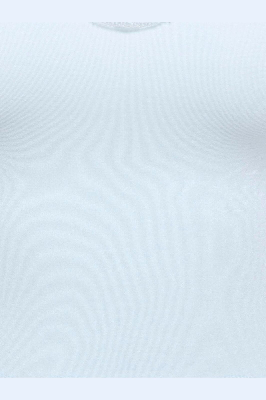 Lyseblå cropped top fra Only med blondedetaljer. Toppen har en v-udskæring med blondekant og tynde stropper. Det sømløse design giver en tætsiddende pasform.