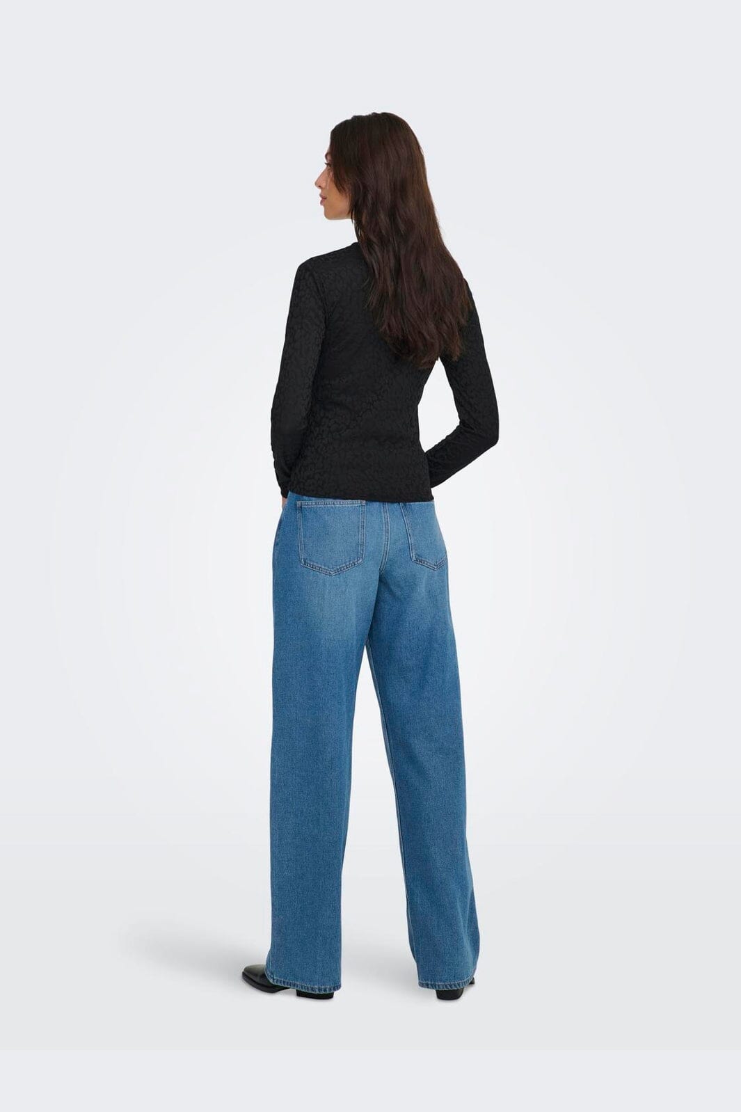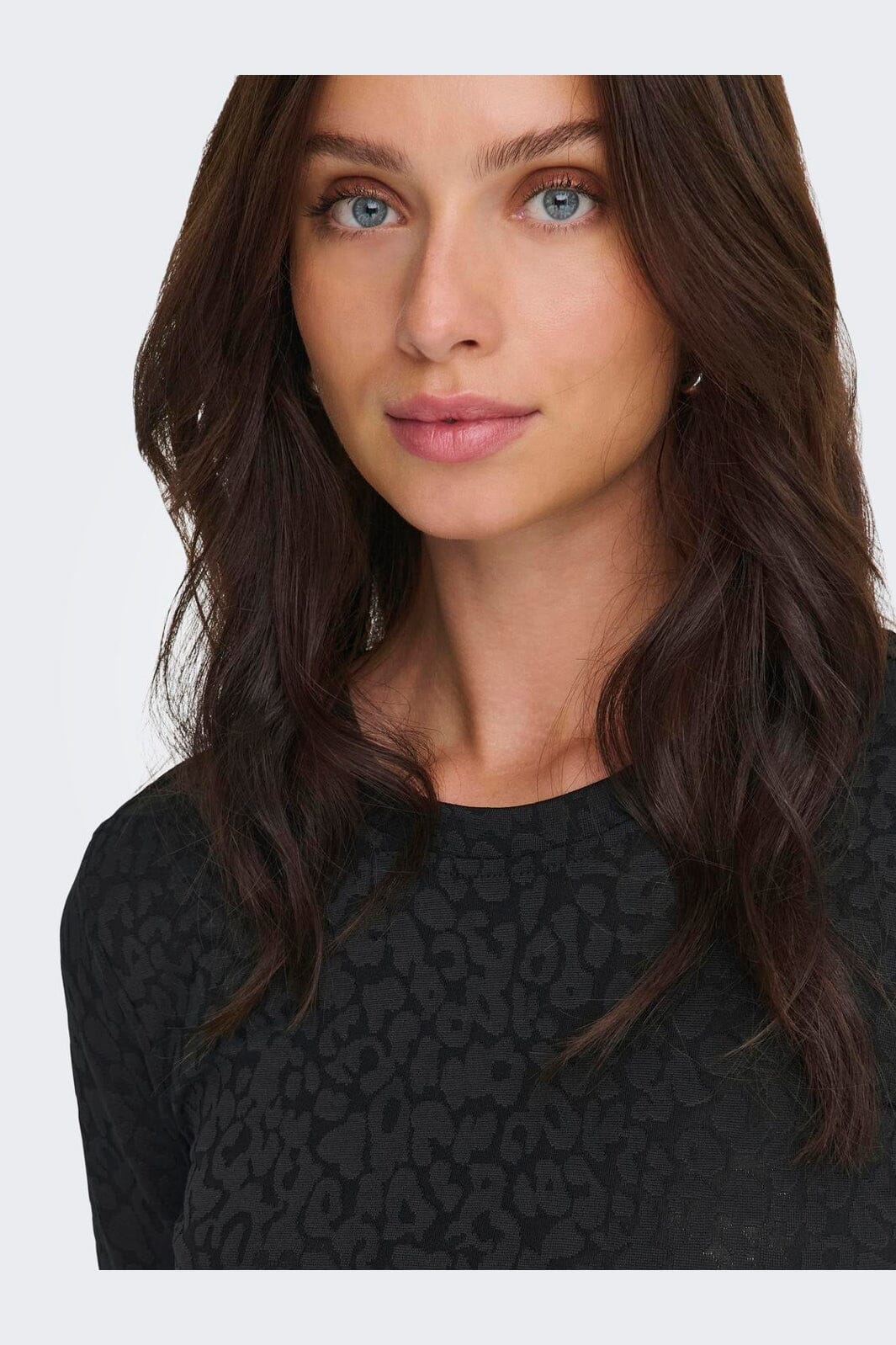 Sort langærmet top fra Only med rund hals og leopardmønster. Toppen har en kropsnær pasform og er lavet i en blød kvalitet med stræk, hvilket gør den behagelig at have på.