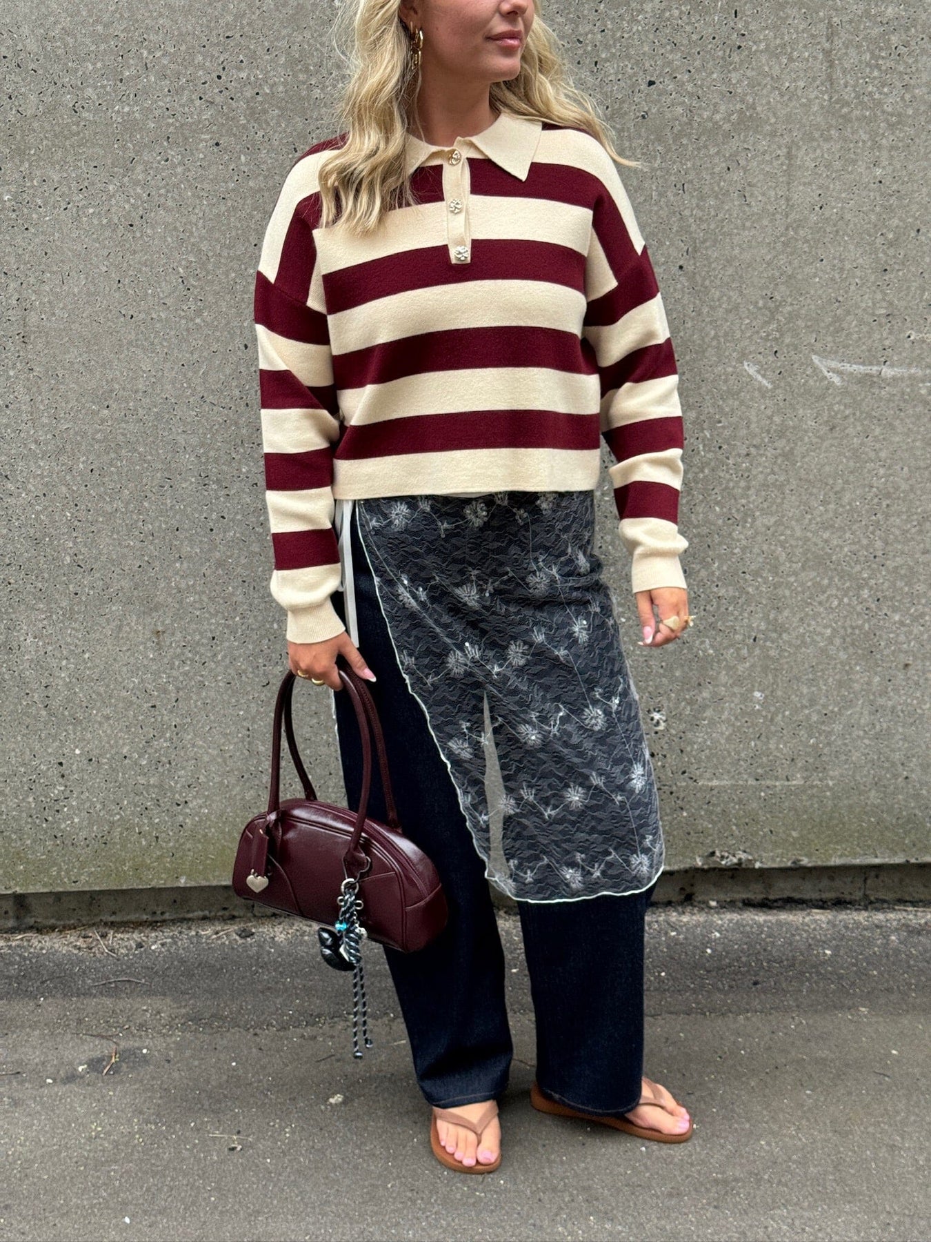 Pieces Pcjassy Ls Short Polo Knit Farve: 5040020 Winetasting Birch