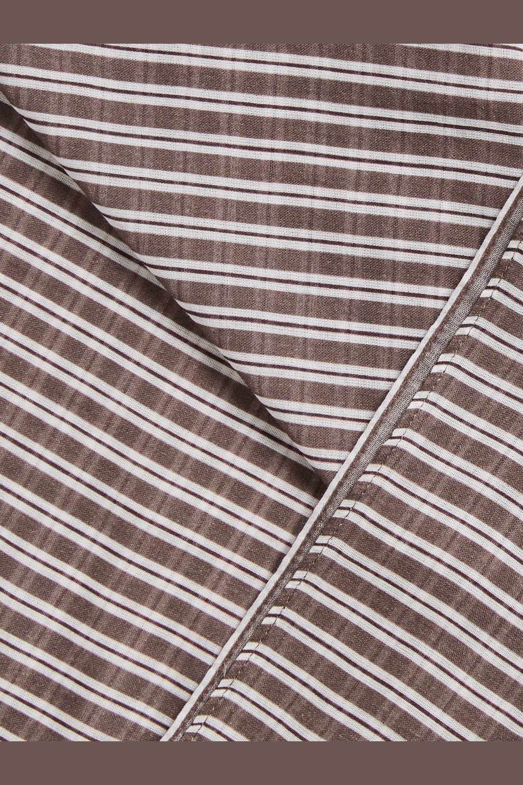 Firkantet tørklæde fra Pieces i brun og hvid. Lavet af økologisk bomuld med striber på tværs. Tørklædets firkantede form giver mange muligheder for at style det.