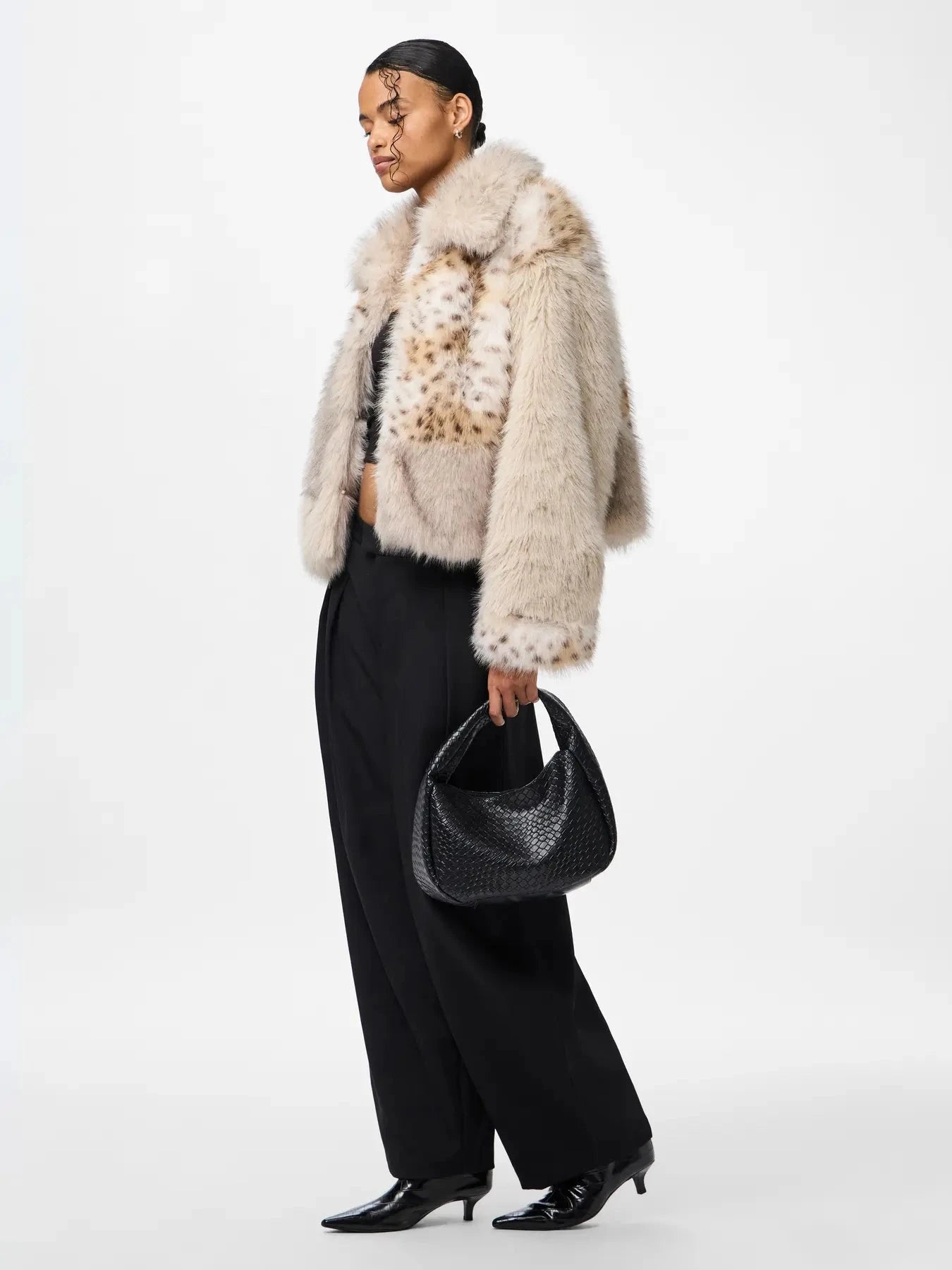 Pieces Pcplush Short Fluffy Jacket Farve: 5023208 Porpoise Patchwork