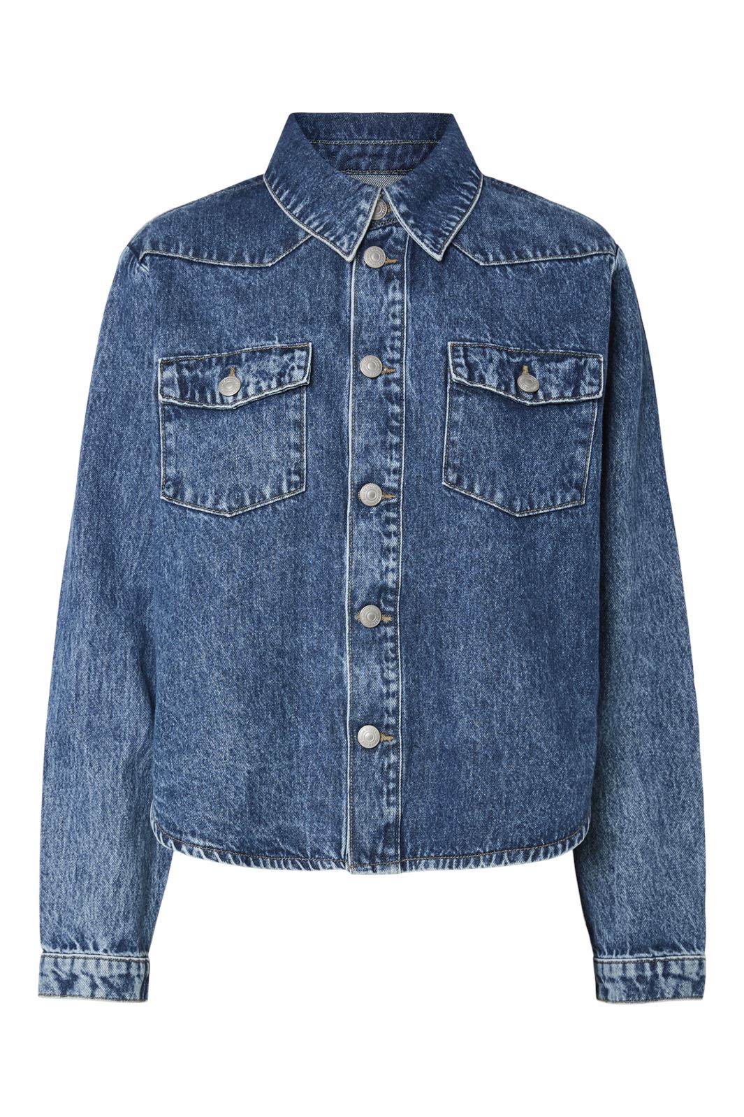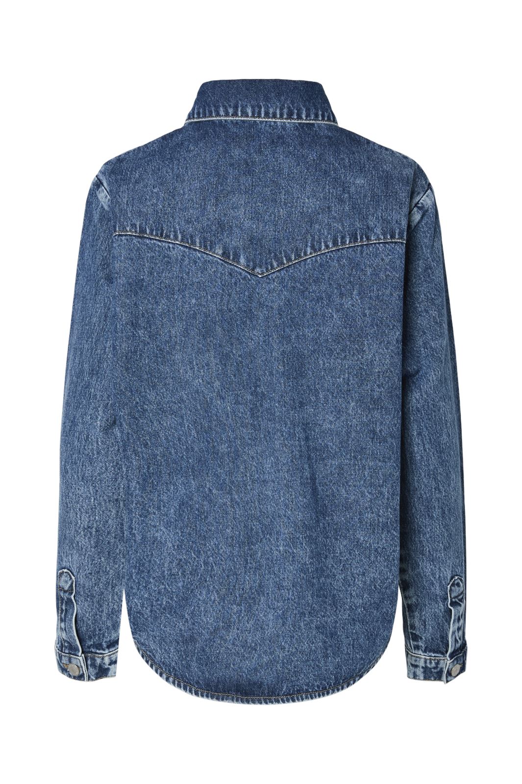 Denimskjorte fra Pieces i medium blå denim. En klassisk skjorte med brystlommer, knaplukning og dekorative syninger. Den løse pasform giver god bevægelsesfrihed.