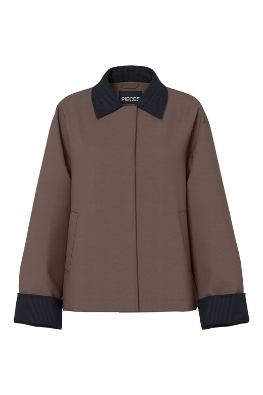 Blazer fra Pieces i farven Elmwood med korte ærmer og knaplukning. Den har en regular fit og spredt krave. Designet med praktiske sidelommer og en neutral farve, der passer til mange outfits.