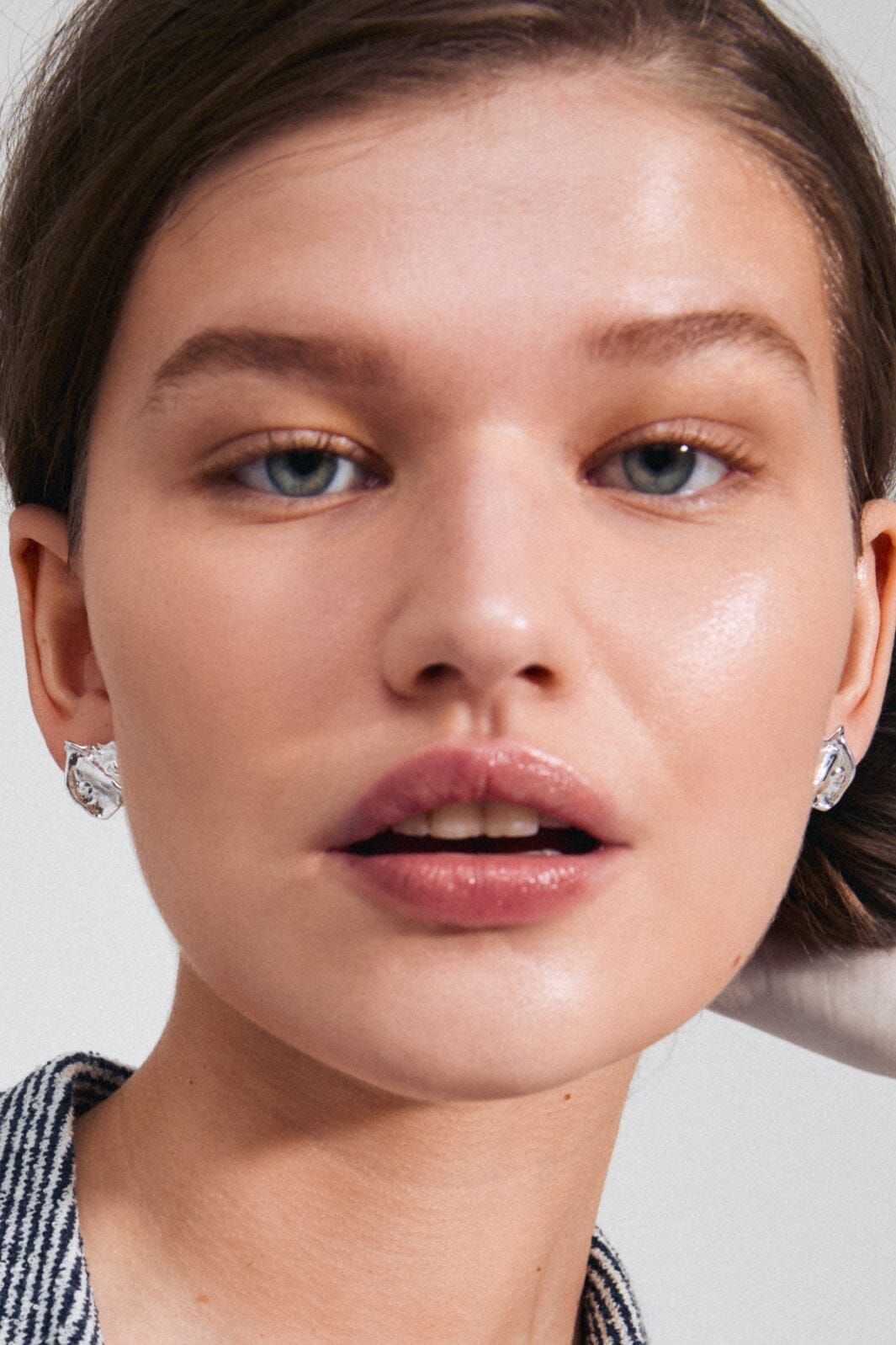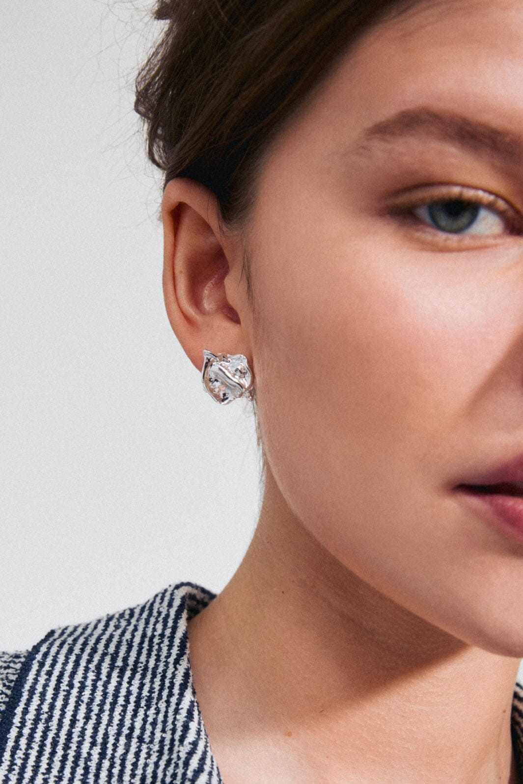 Sølvbelagte øreringe fra Pilgrim med en organisk form. Øreringene har en blank overflade og er fremstillet af genanvendte materialer.