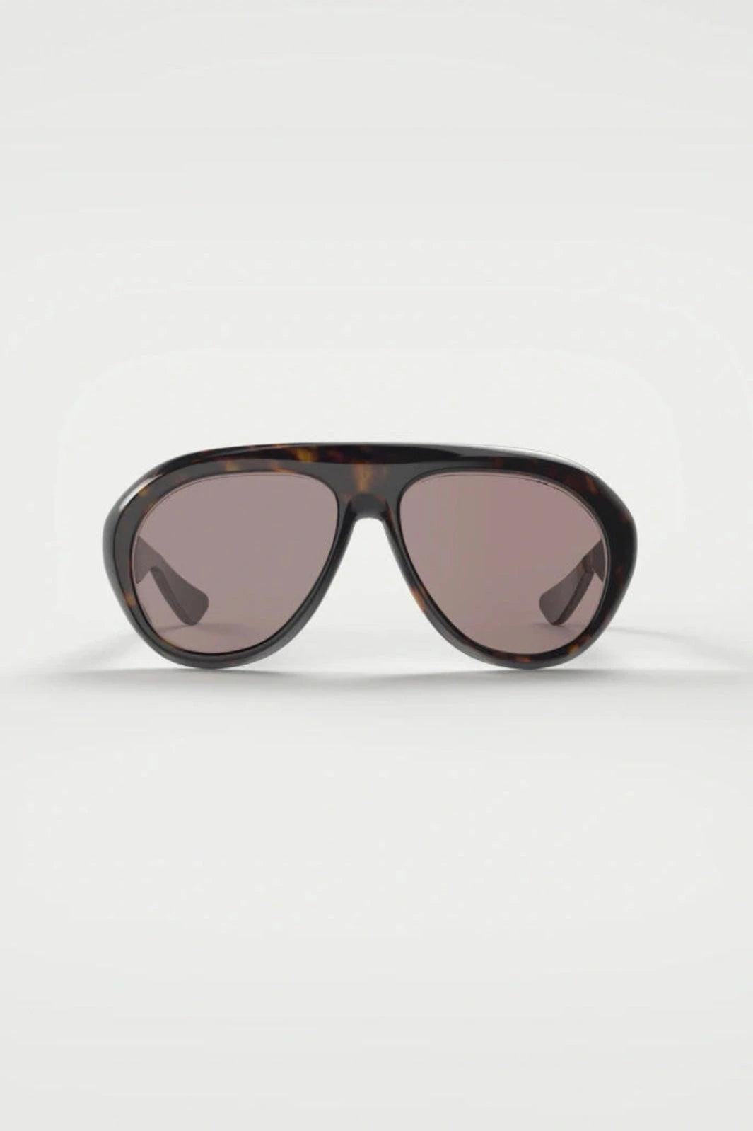 Solbriller fra Rotate i aviator-stil med et brunt skildpaddemønster. Stellet har en klassisk form med dobbeltbro og tonede linser.