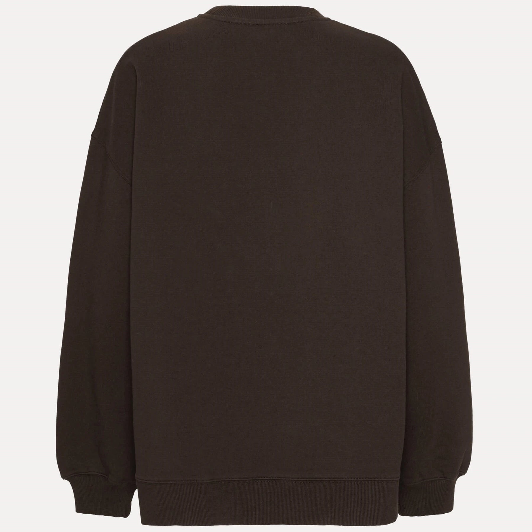 Mørkebrun sweatshirt fra Rotate med rund hals. Den har store hvide broderidetaljer på forsiden og en oversized pasform, der giver god bevægelsesfrihed.
