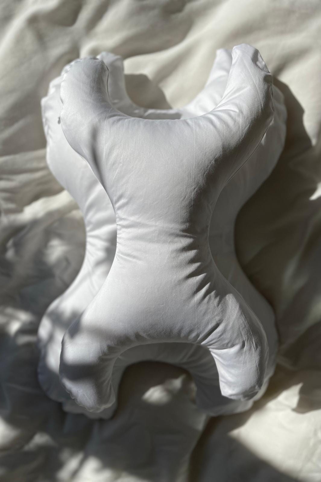 Hvidt pudebetræk fra Save My Face med X-formet design. Betrækket er fremstillet i bomuld med 500 tråde per kvadrattomme og har en særlig perlevævning.