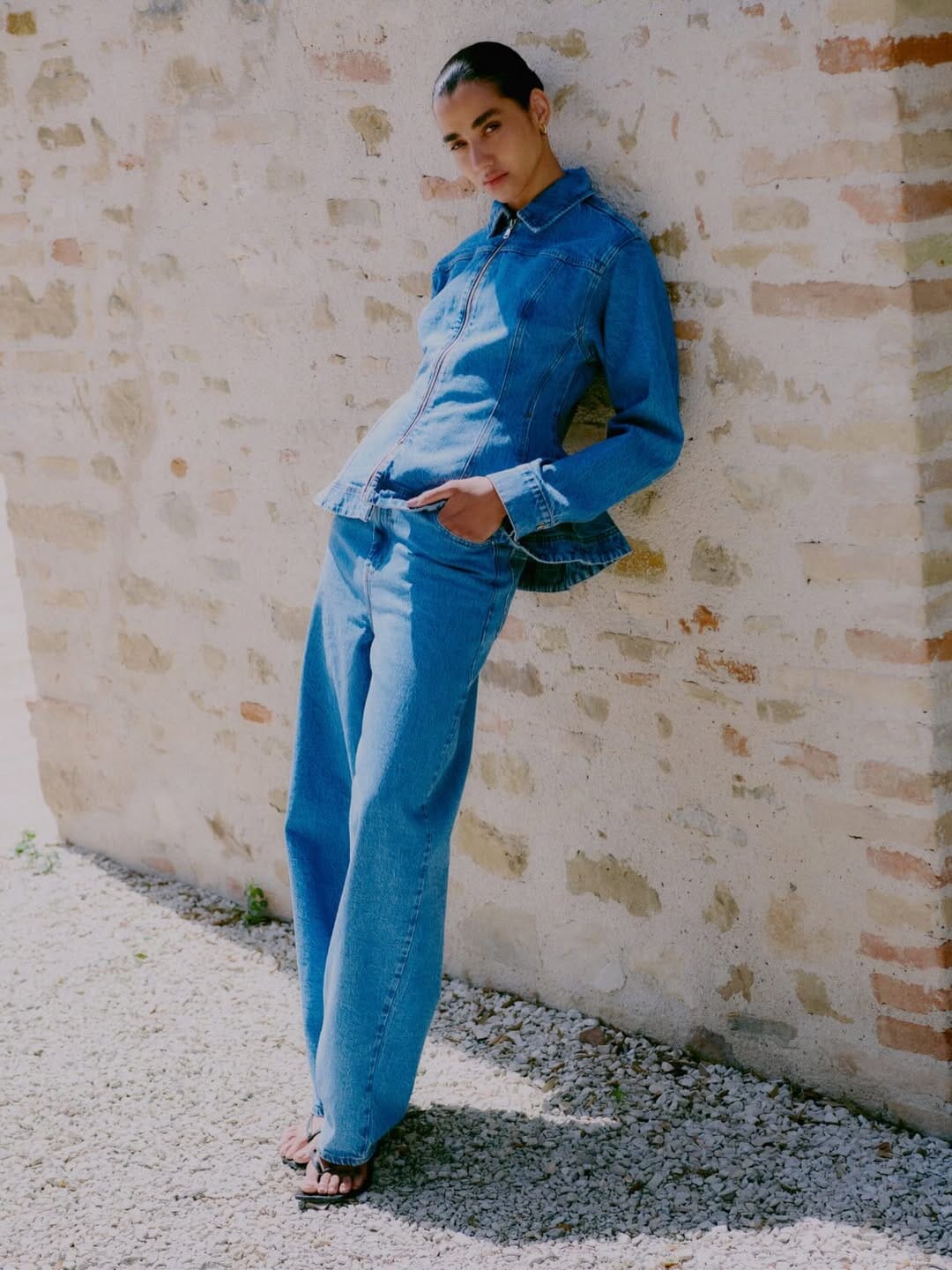 - Blå denim i mellemblå vask