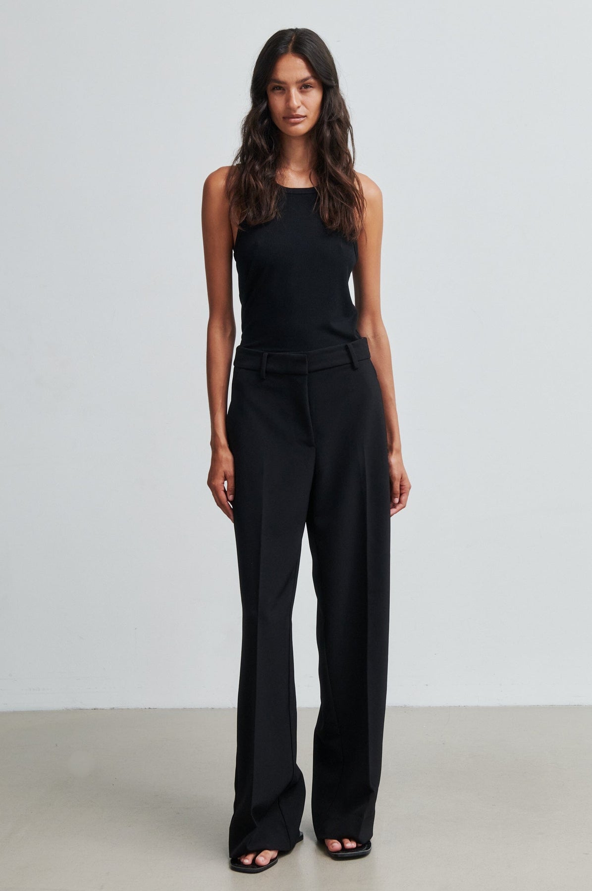Sort tanktop fra Second Female med en ribbet tekstur. Den har et ærmeløst design og en rund halsudskæring.