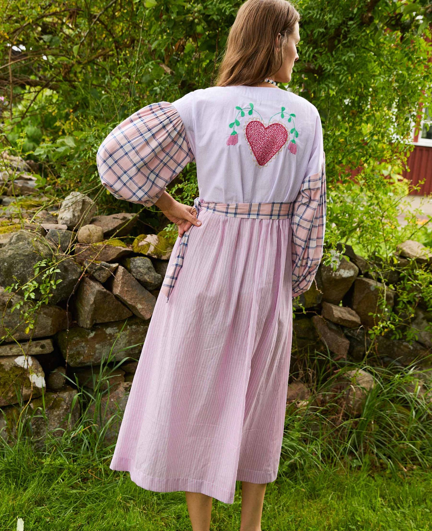 En wrapkjole fra Sissel Edelbo med et flerfarvet design i ternet og stribet mønster. Kjolen er lavet af overskydende bomuld og deadstock-stoffer.