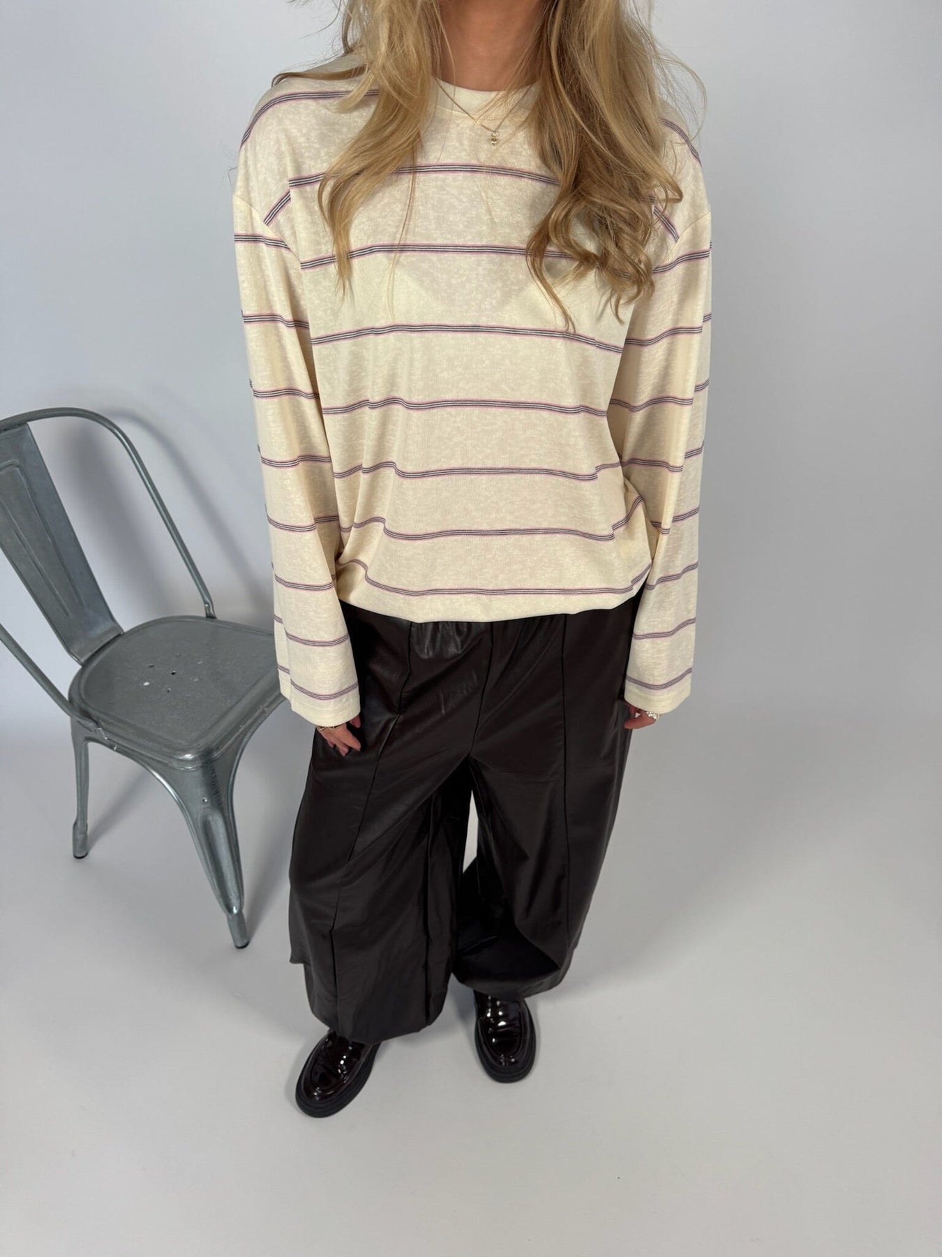 Cremefarvet stribet bluse fra Sisters Point. Blusen har en afslappet pasform med lange ærmer og en klassisk rund halsudskæring.