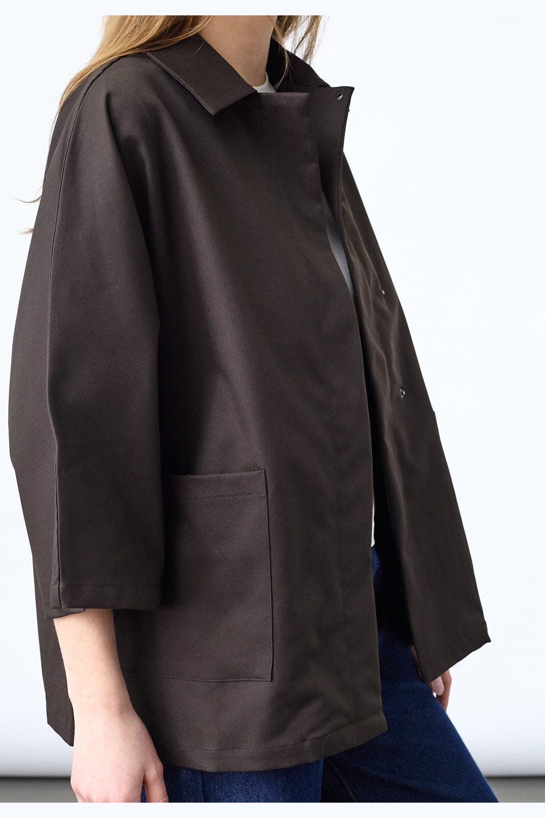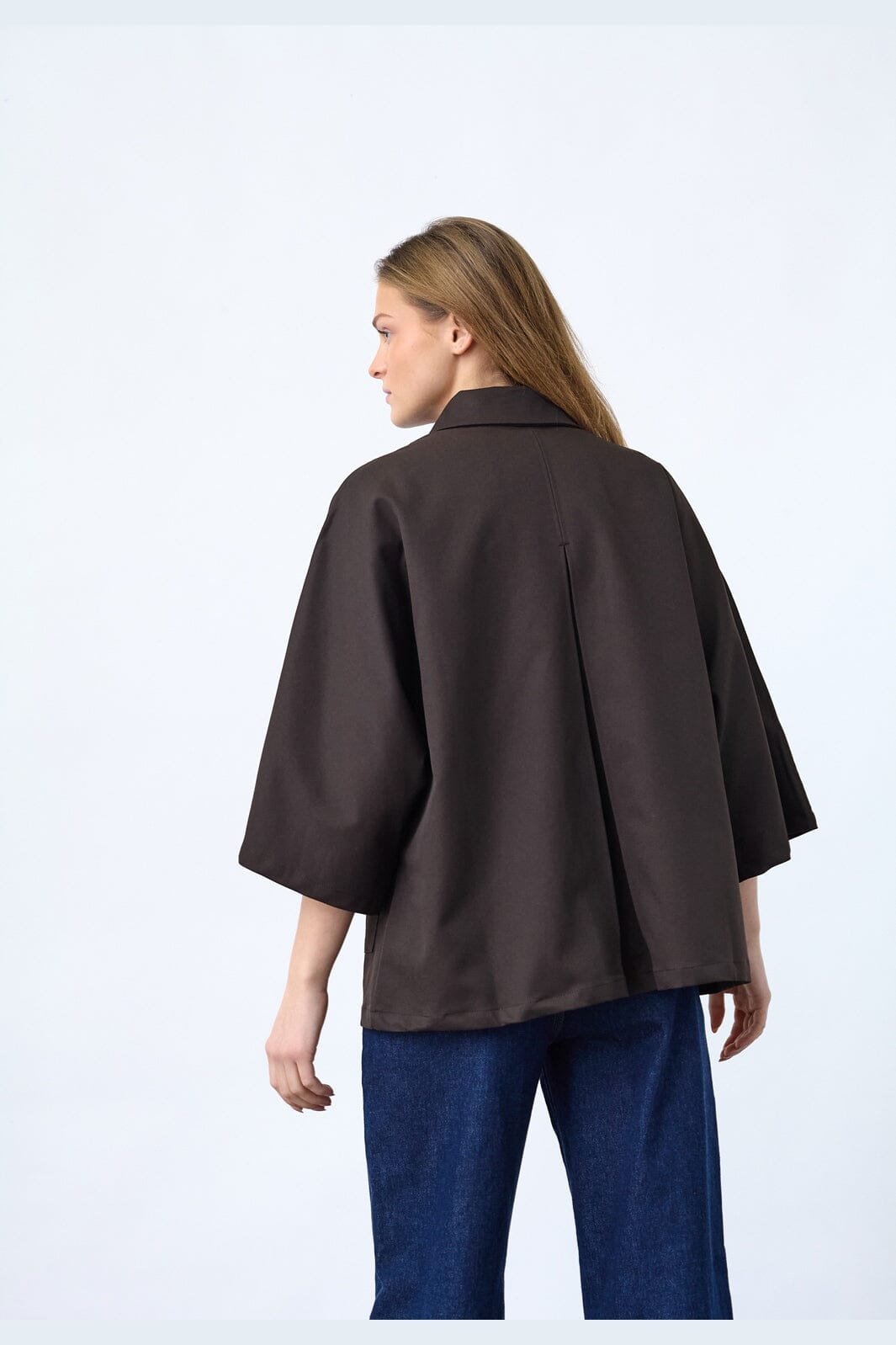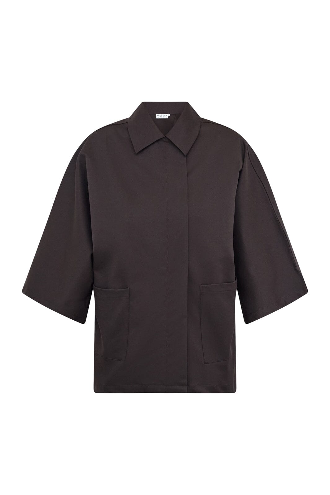 Ensfarvet jakke fra Sisters Point i mørk chokoladebrun. Jakken har en oversized pasform og 3/4 ærmer med brede snit.