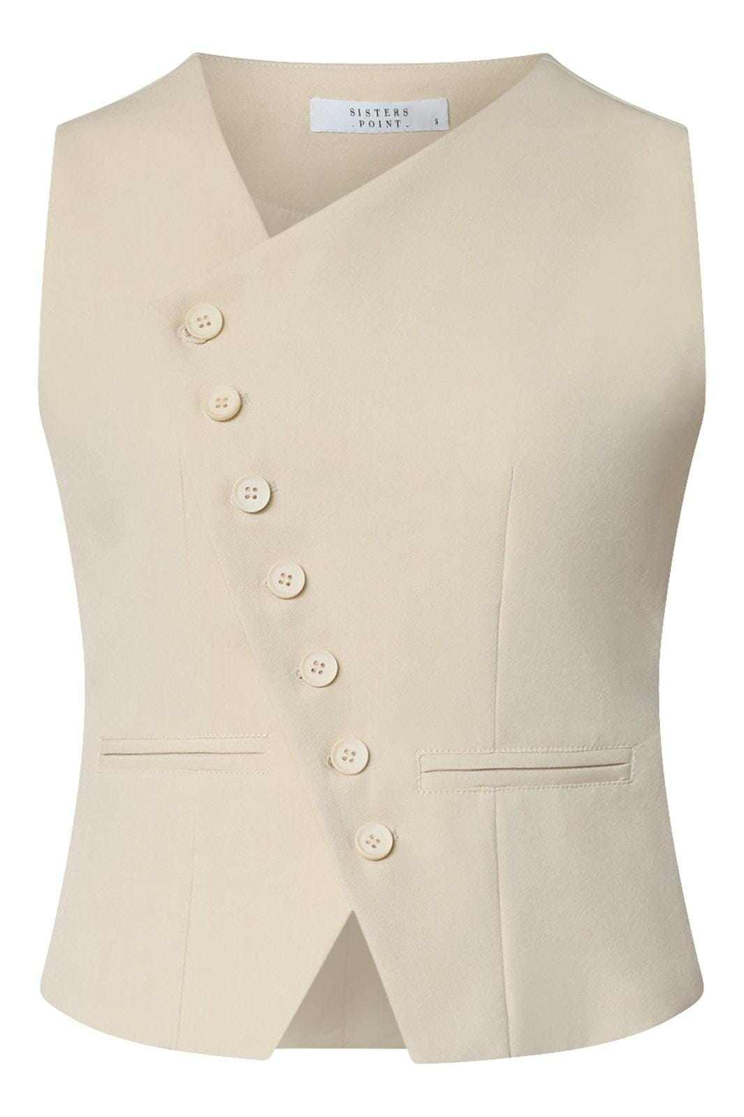 Ærmeløs vest fra Sisters Point i en lys beige nuance. Vesten har en V-hals og dekorative knapper langs fronten.