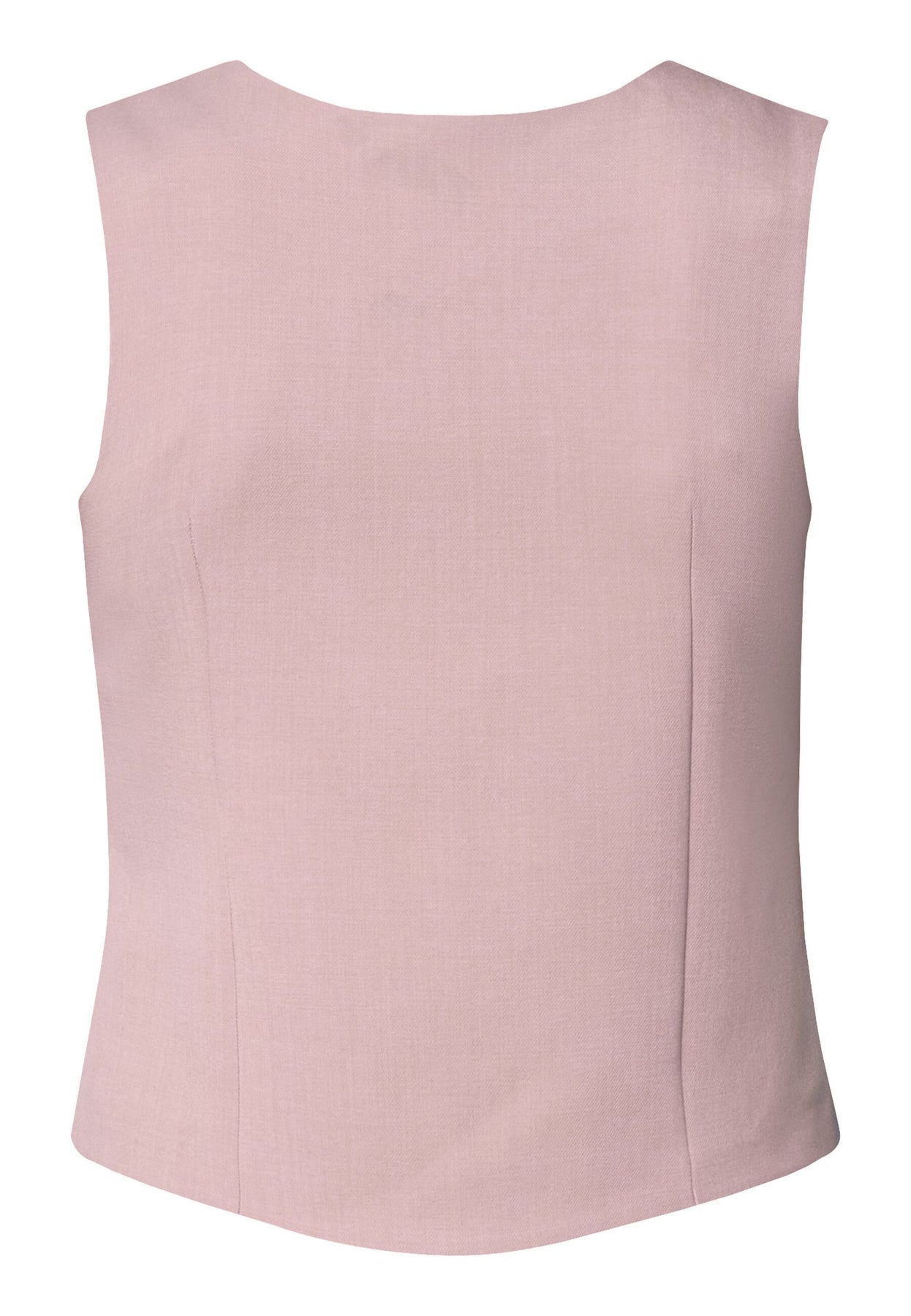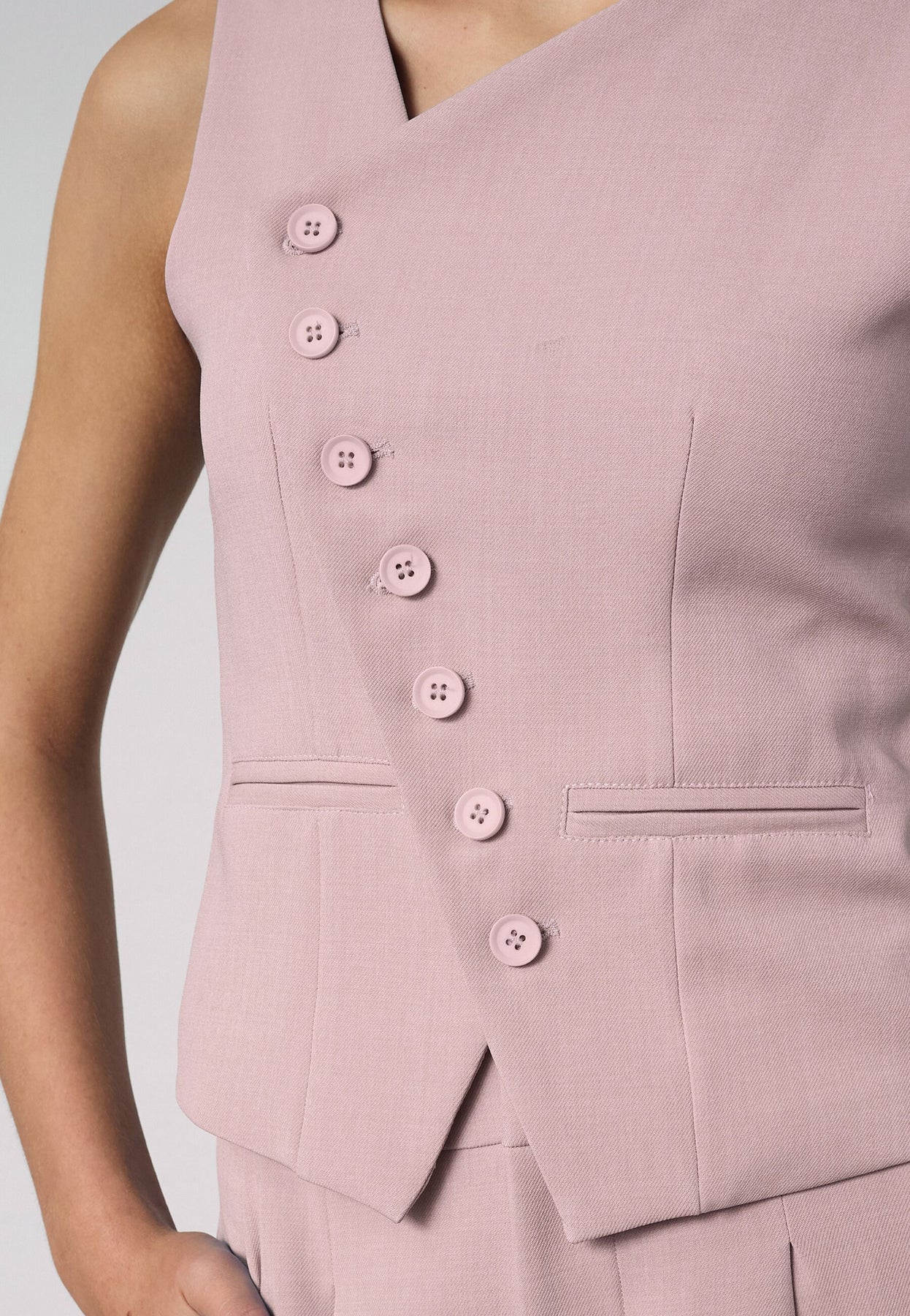 Lilla vest fra Sisters Point, lavet af 92 % polyester og 8 % elastan. Vesten har et asymmetrisk design med syv knapper langs fronten.
