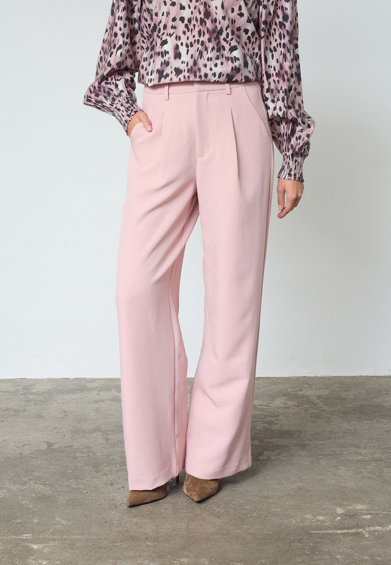 Lys lilla bukser fra Sisters Point med en løs pasform og vide ben. Bukserne har læg foran og praktiske sidelommer.