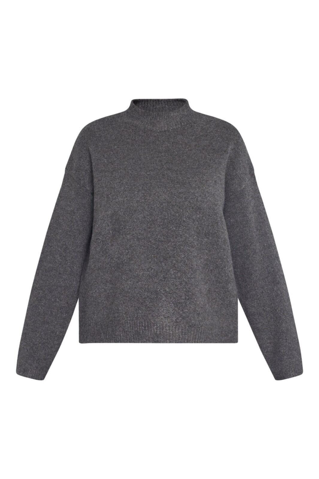 Strikket sweater fra Sisters Point i brun og grå melange. Sweateren har høj halsudskæring, lange ærmer og en løs pasform.