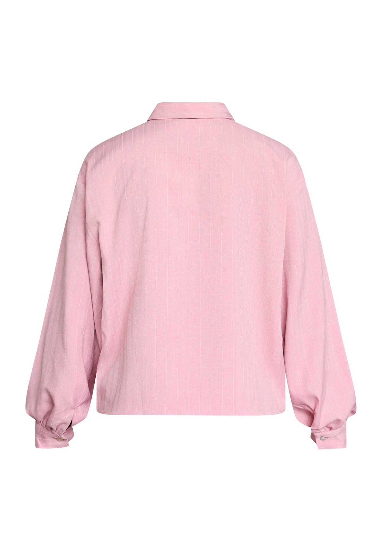 Lyserød skjorte fra Sisters Point med pinstripes. Skjorten har lange ærmer, klassisk krave og en løs pasform med brystlomme og knaplukning.