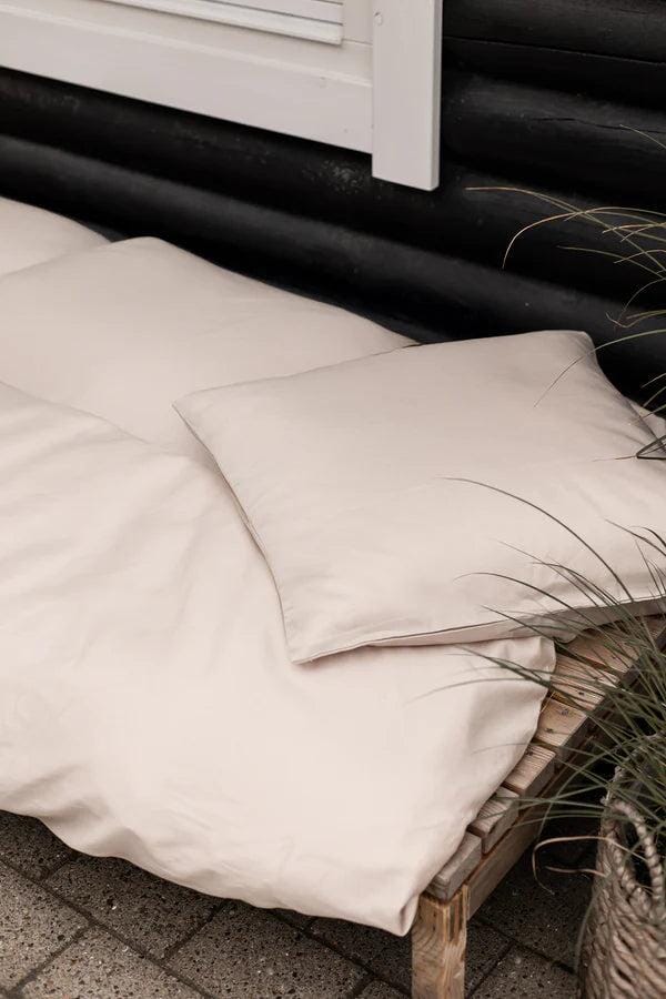Sengetøj fra Specktrum i Power Powder-nuancen. Dette sæt består af både pudebetræk og dynebetræk i en lys, rolig farvetone. Stoffet har en glat og ensartet overflade.