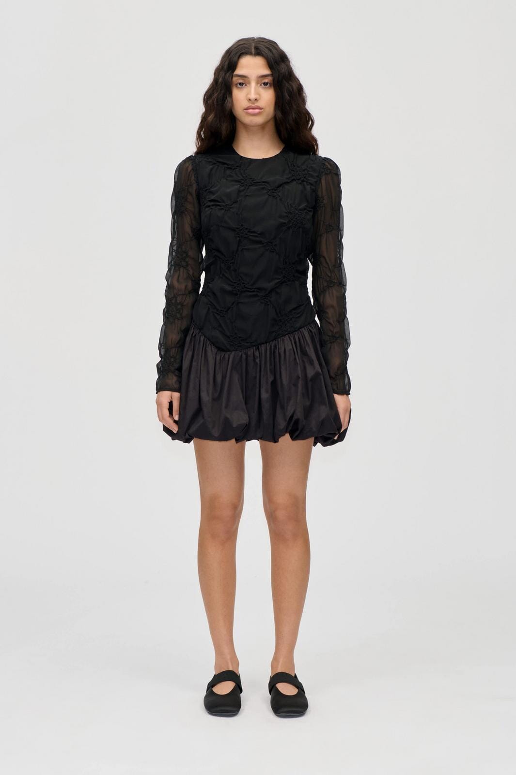 Stine Goya 2449 Smocked Cotton Mix, Balloon Long Sleeve Short Dresssg-ps26-d188-2449 Farve: Smocked Flowers