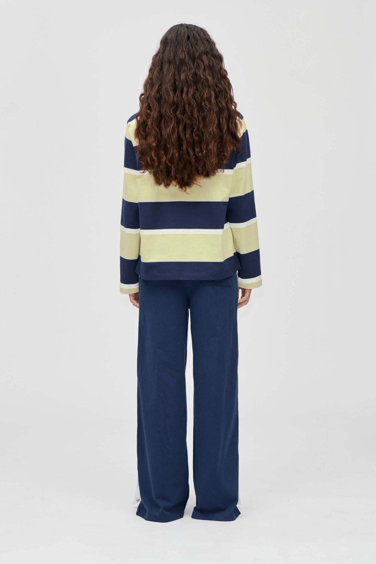 Stine Goya 2457 Heavy Dry Jersey / Cotton, Polo Long Sleeve Topsg-ps26-t120-2457 Farve: Yellow And Navy Blue Stripes