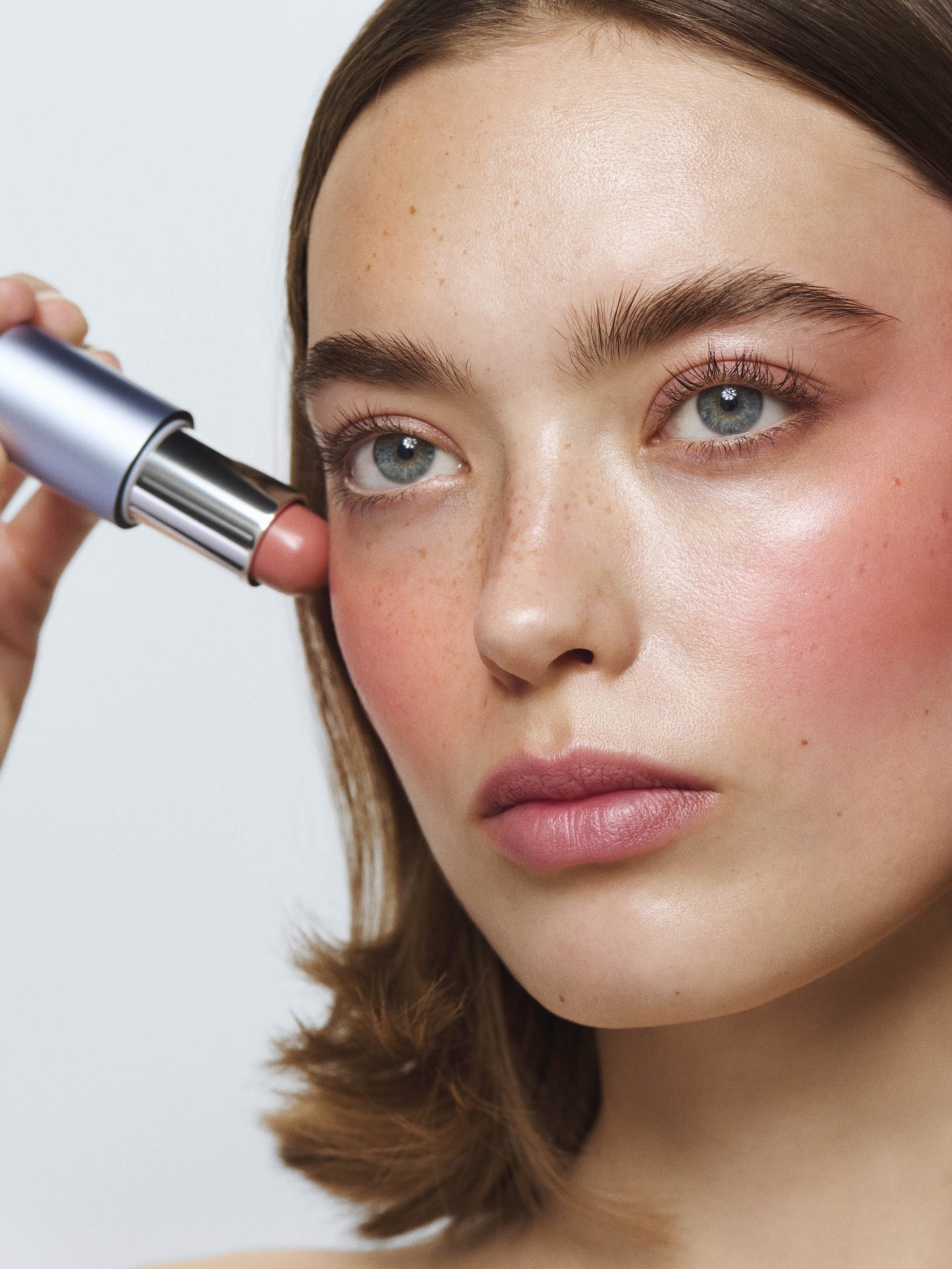 Produktet kan bruges på flere måder. Påfør det på kinderne som blush, på læberne som farve eller på øjenlågene som skygge.