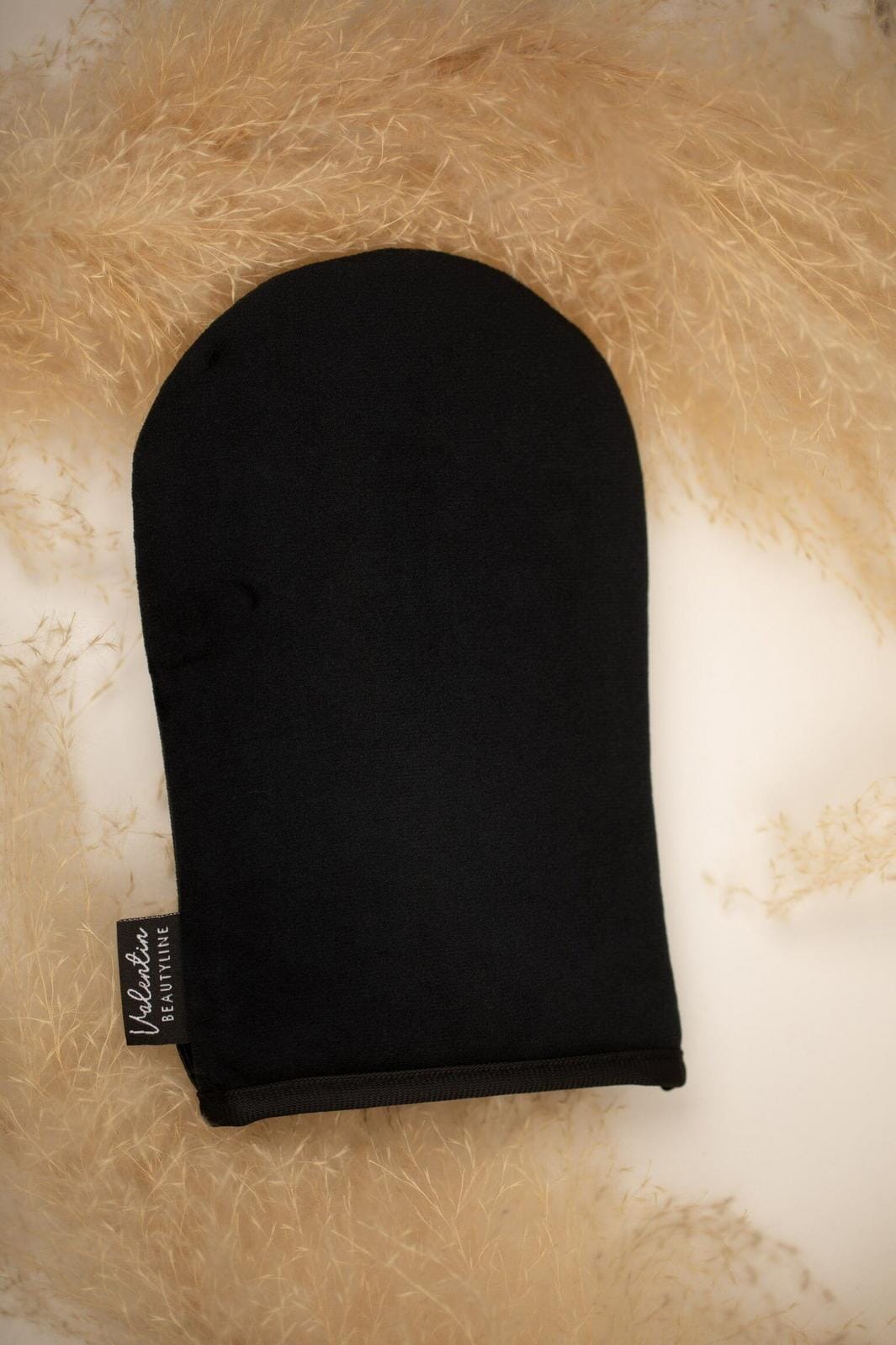 Sort applikeringshandske fra Valentin Beautyline til selvbruner og bronzer. Handsken beskytter hænderne mod farve og hjælper med at fordele produktet jævnt.