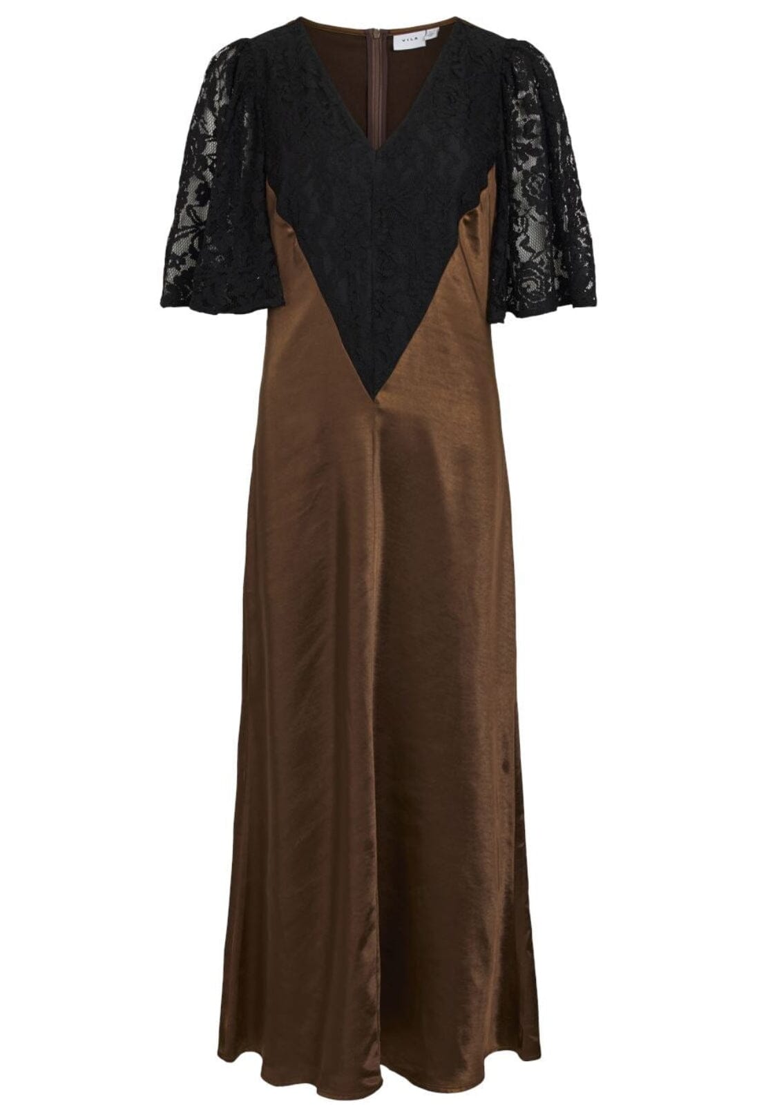 Vila Vikabiha 2/4 Lace Detail Midi Dress Farve: 4720263 Coffee Bean Black Lace