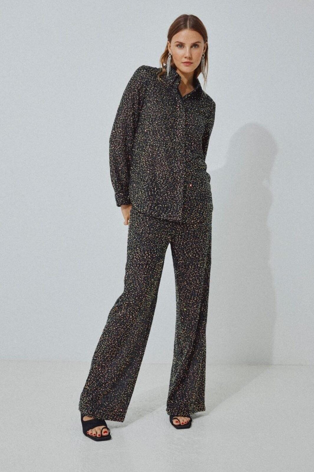 Disse bukser har en behagelig regular fit og er prydet med skinnende pailletter, der fanger lyset og øjet.