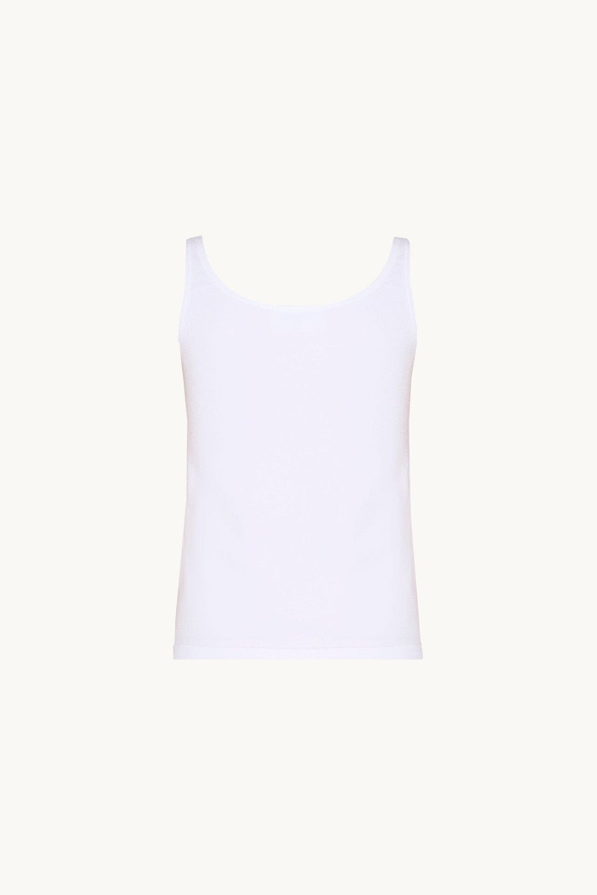 Hvid ærmeløs top fra Wolford. Toppen har en rund halsudskæring og en tætsiddende pasform. Den er lavet i en ensfarvet hvid nuance.