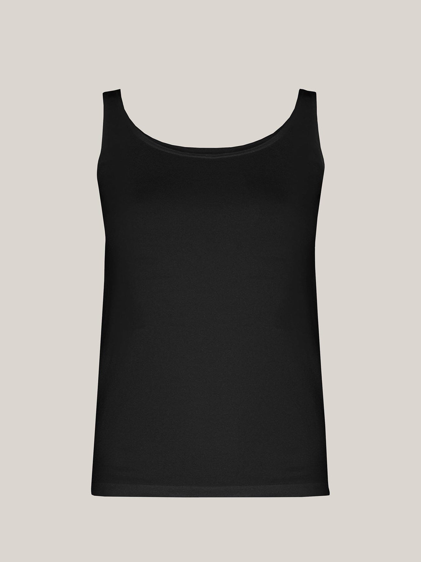 Sort, ærmeløs top fra Wolford med tætsiddende pasform og rund halsudskæring. Den sorte farve gør den nem at kombinere med resten af garderoben.