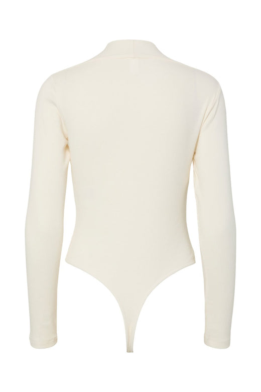 Cremefarvet body fra Y. A.S med V-hals og lange ærmer. Den er lavet af økologisk bomuld med stretch og har en tætsiddende pasform.