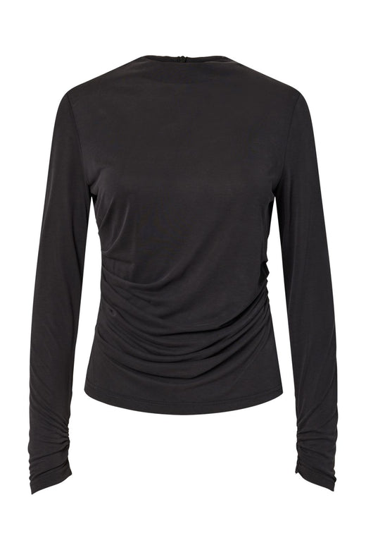 Sort langærmet top fra Y. A.S med rund halsudskæring. Toppen har rynkedetaljer foran og en regular fit-pasform, der gør den behagelig at have på.