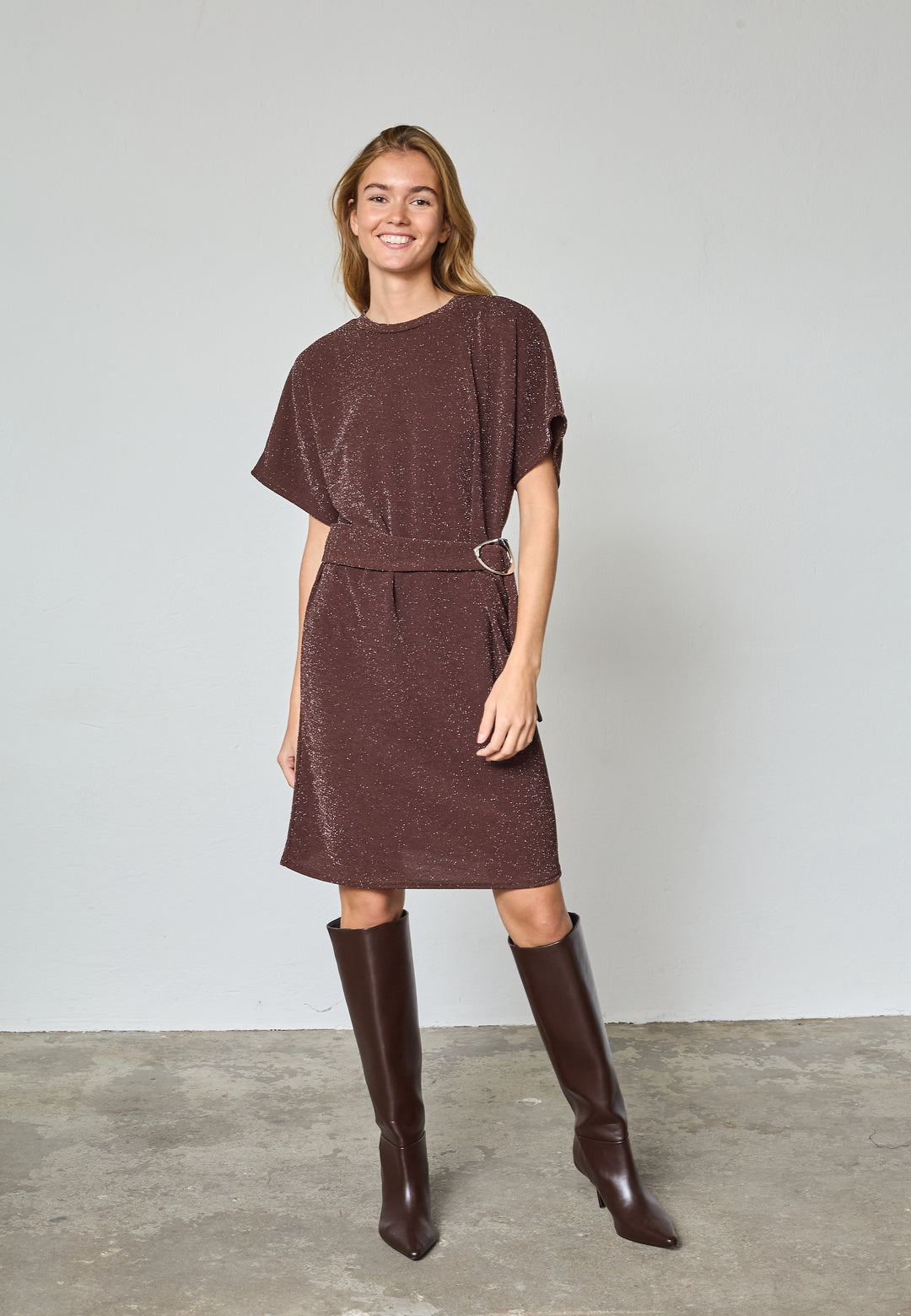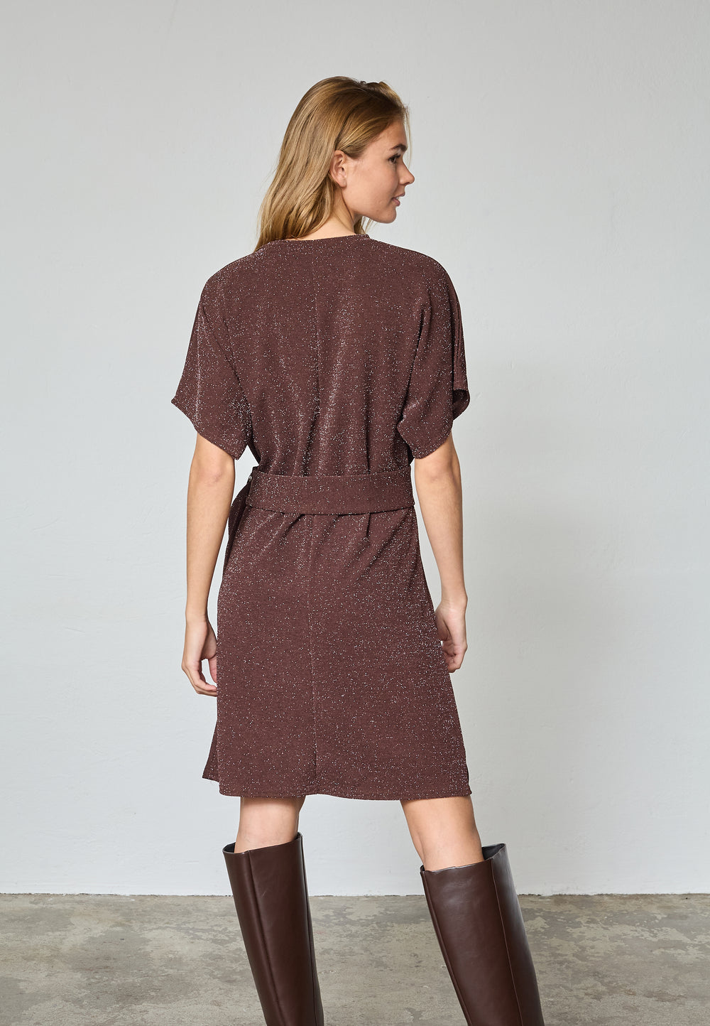 Brun skjorte fra Y. A.S med hvide prikker. Skjorten har en klassisk krave, lange ærmer med manchetter og knaplukning foran. Materialet er lavet af genanvendt polyester med elastan.
