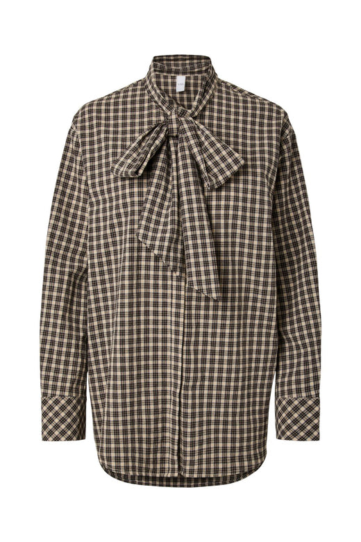 Lang skjorte fra YAS, lavet af 100 % bomuld med et ternet mønster i brune og beige nuancer.